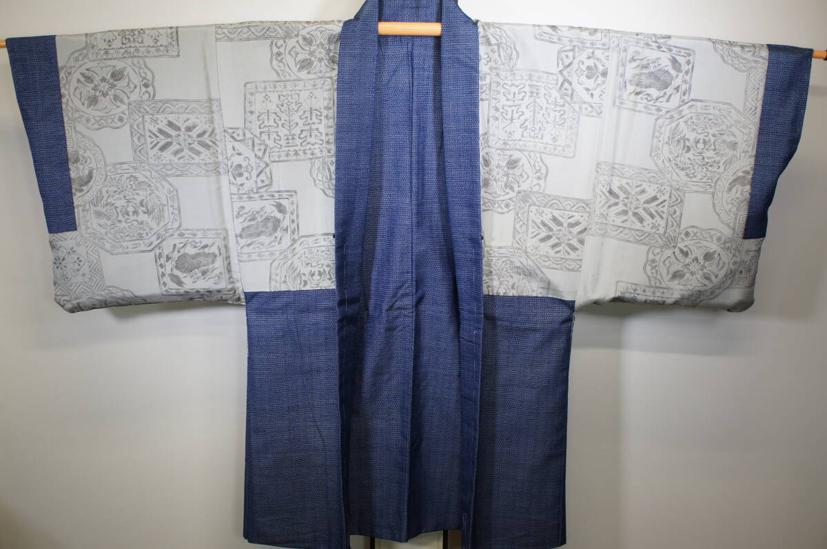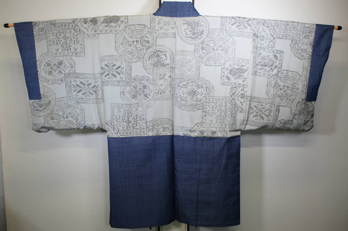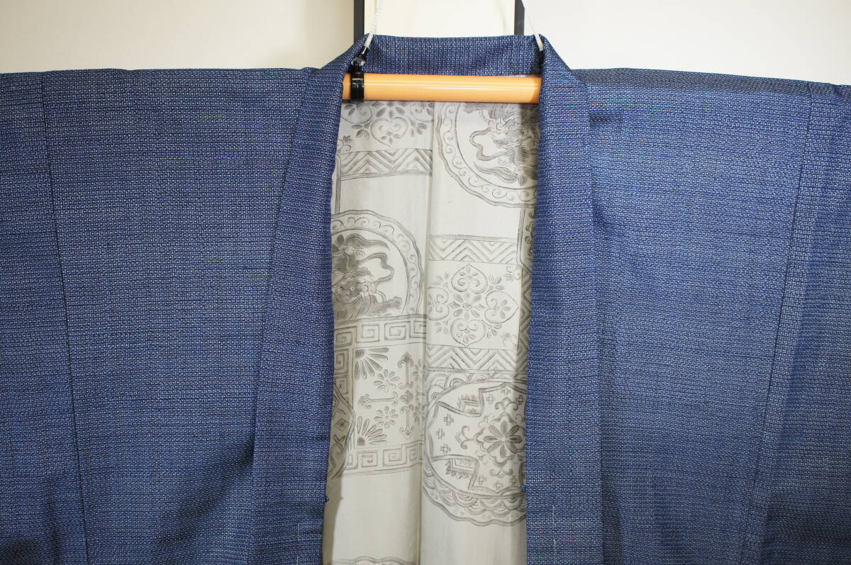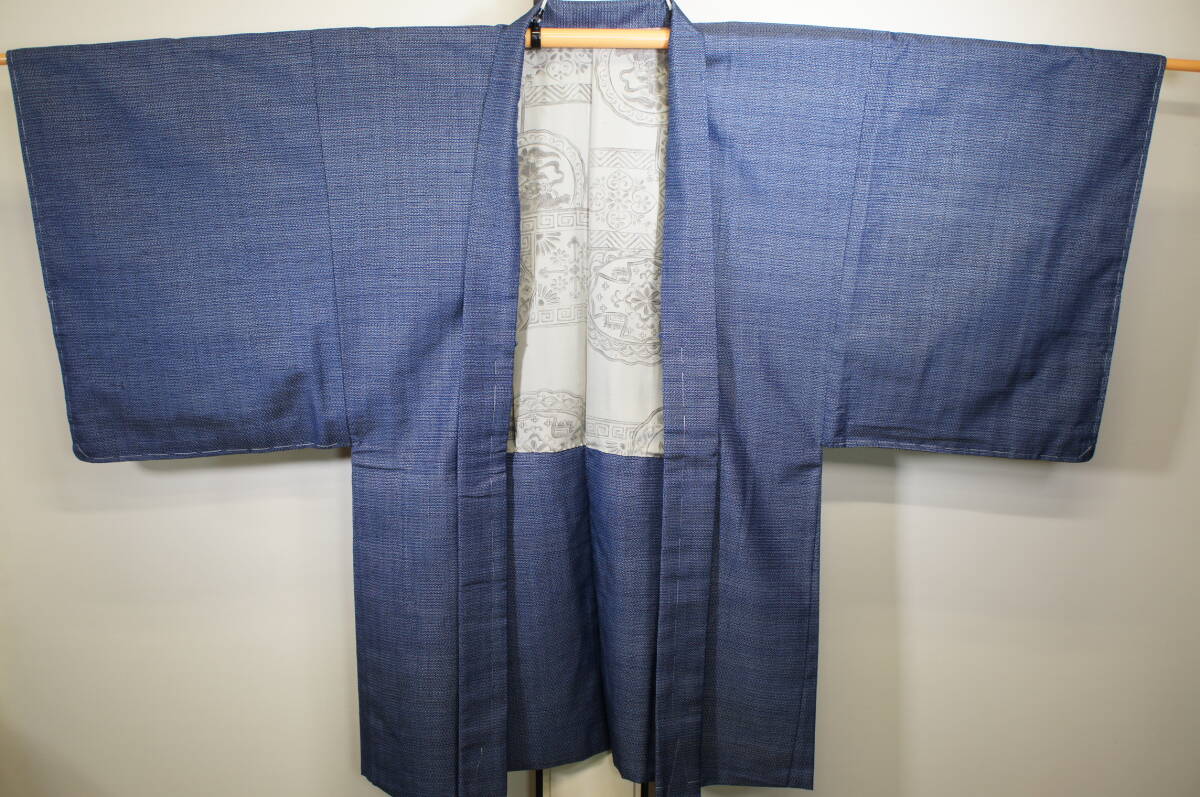 男性羽織・身長168.5~173.5cm・結城紬100亀甲・紺系・正絹・剣道・居合・№229H