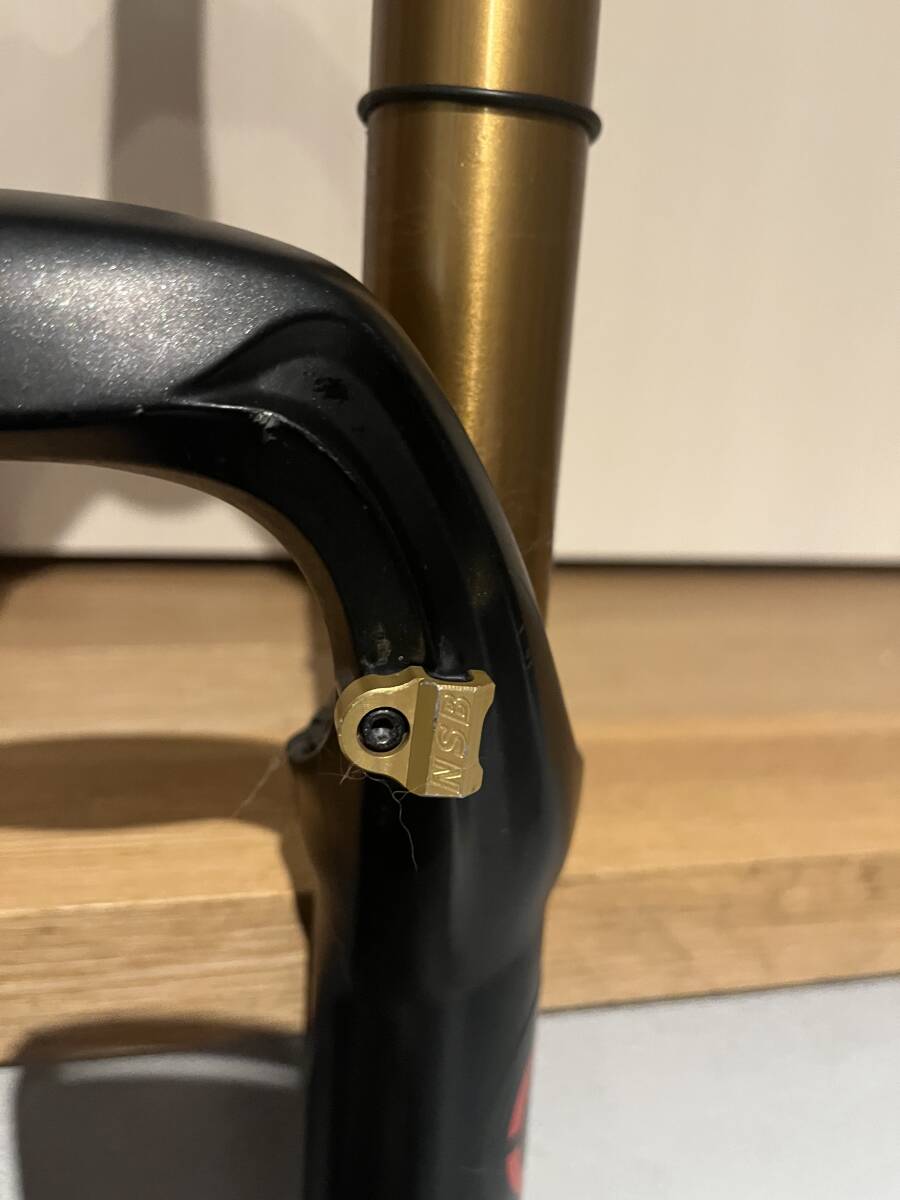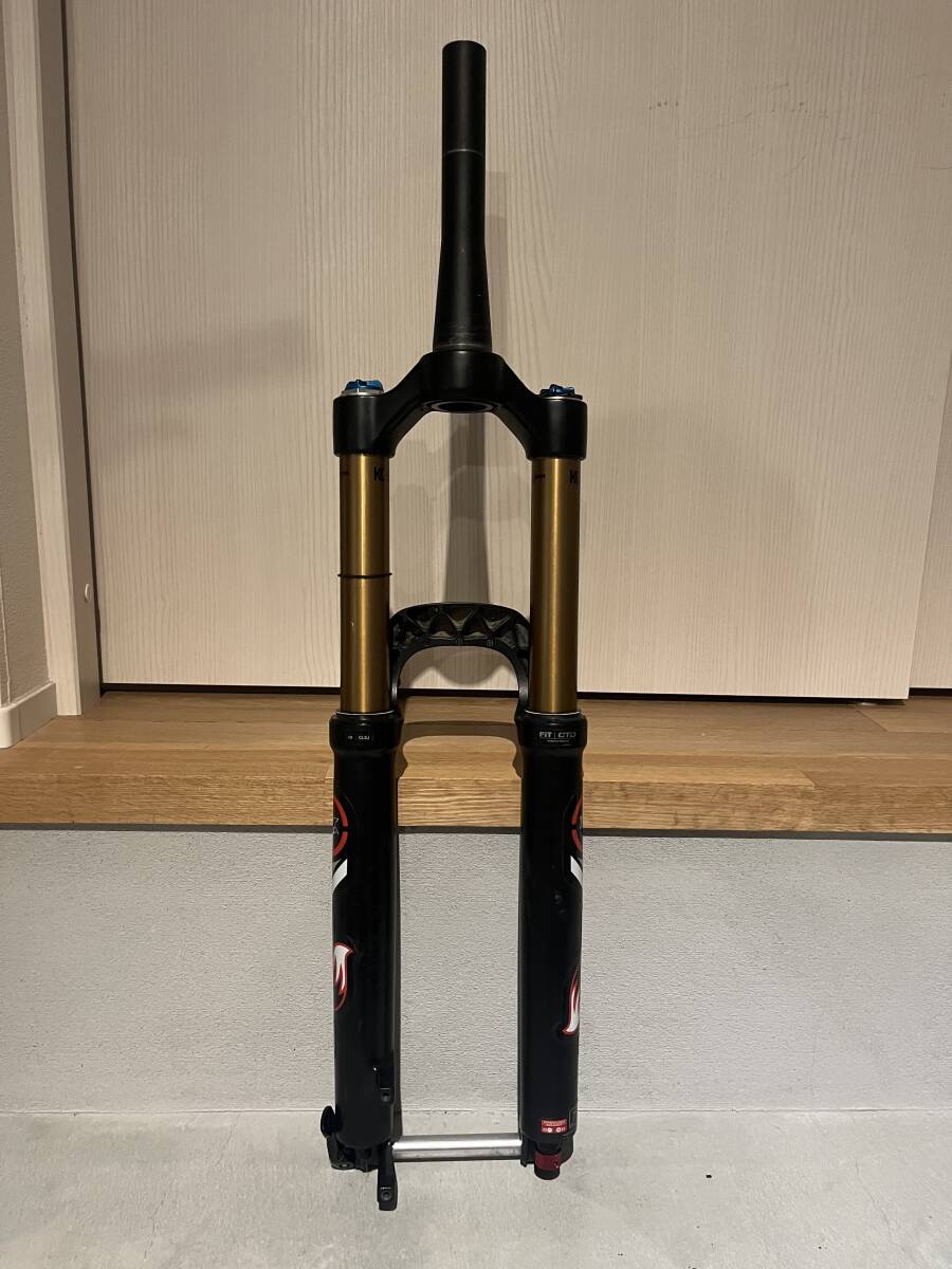 左スタンチオンチューブに転倒時についた傷があります。(浅いので問題はなさそうです。写真を確認ください。)