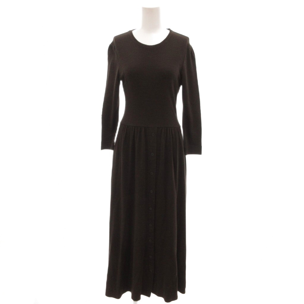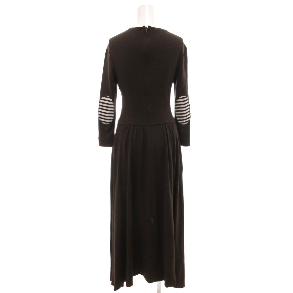 ボーダーズアットバルコニー WEEKEND MAXI ウールジャージーマキシドレス ワンピース エルボーパッチ ロング 七分袖 36 茶