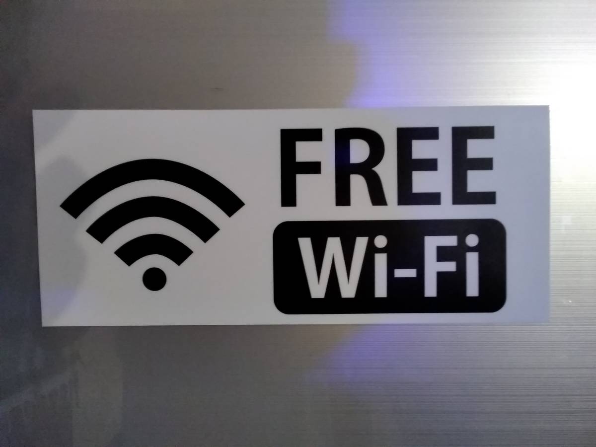 FREE Wi-Fi スマホ モバイル 携帯電話 電波 看板 ステッカー シール★フリーエリアに(ツルツルした面であれば)どこでも貼り付け可能!