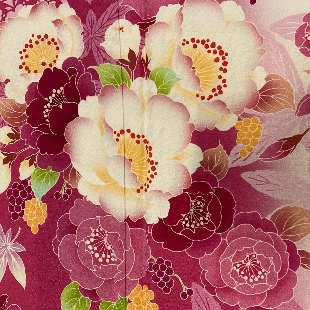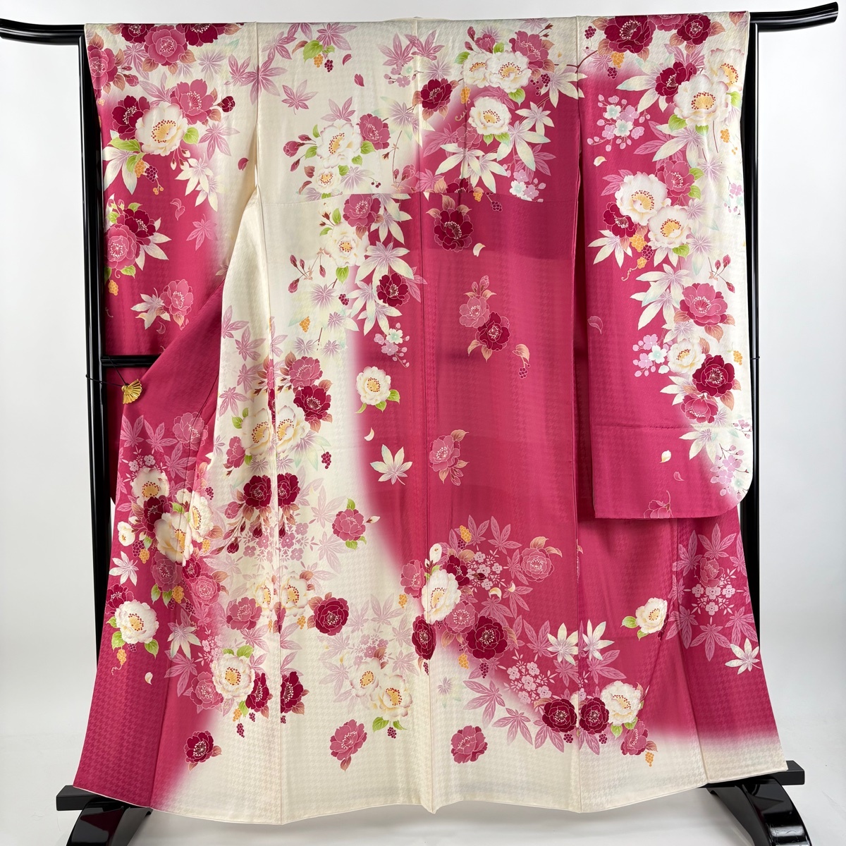 | 振袖 美品 名品 やまと 草花 楓 染め分け ぼかし ピンク 袷 身丈161 裄丈64.5 M 正絹 【中古】 |