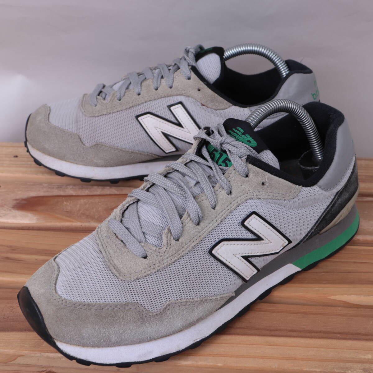 z2254【515】ニューバランス US8 26.0cm/灰 グレー 白 黒 緑 newbalance メンズ スニーカー 中古