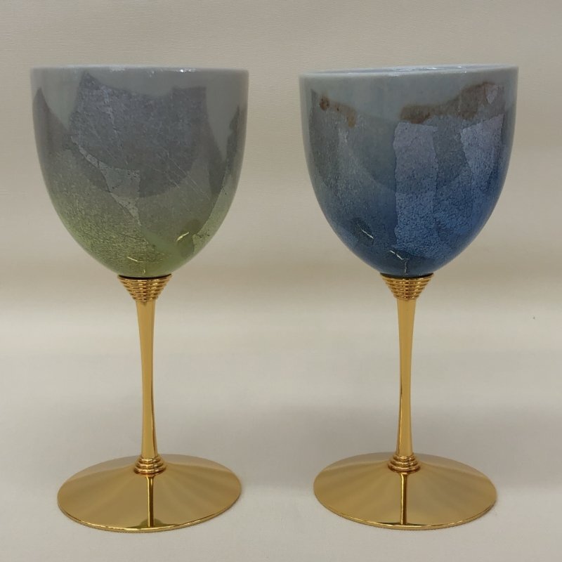 KUTANI 陶器 ワイングラス ペア 2客 銀彩 青 緑 九谷焼 ワインカップ 酒器 お洒落 食器 伝統工芸品 ギフト/255