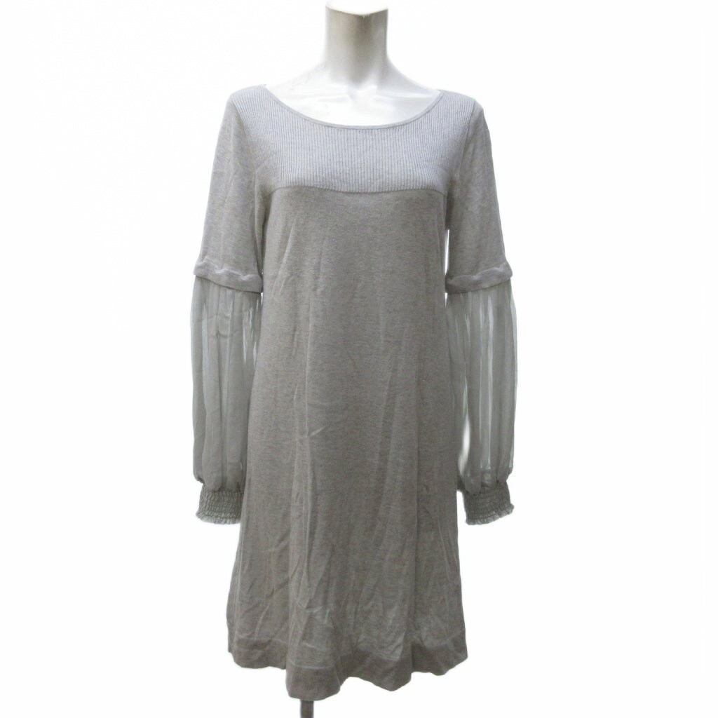 23区 オンワード樫山 チュニック ワンピース 長袖 ボートネック 袖切替 グレー 38 約M ■YHS5