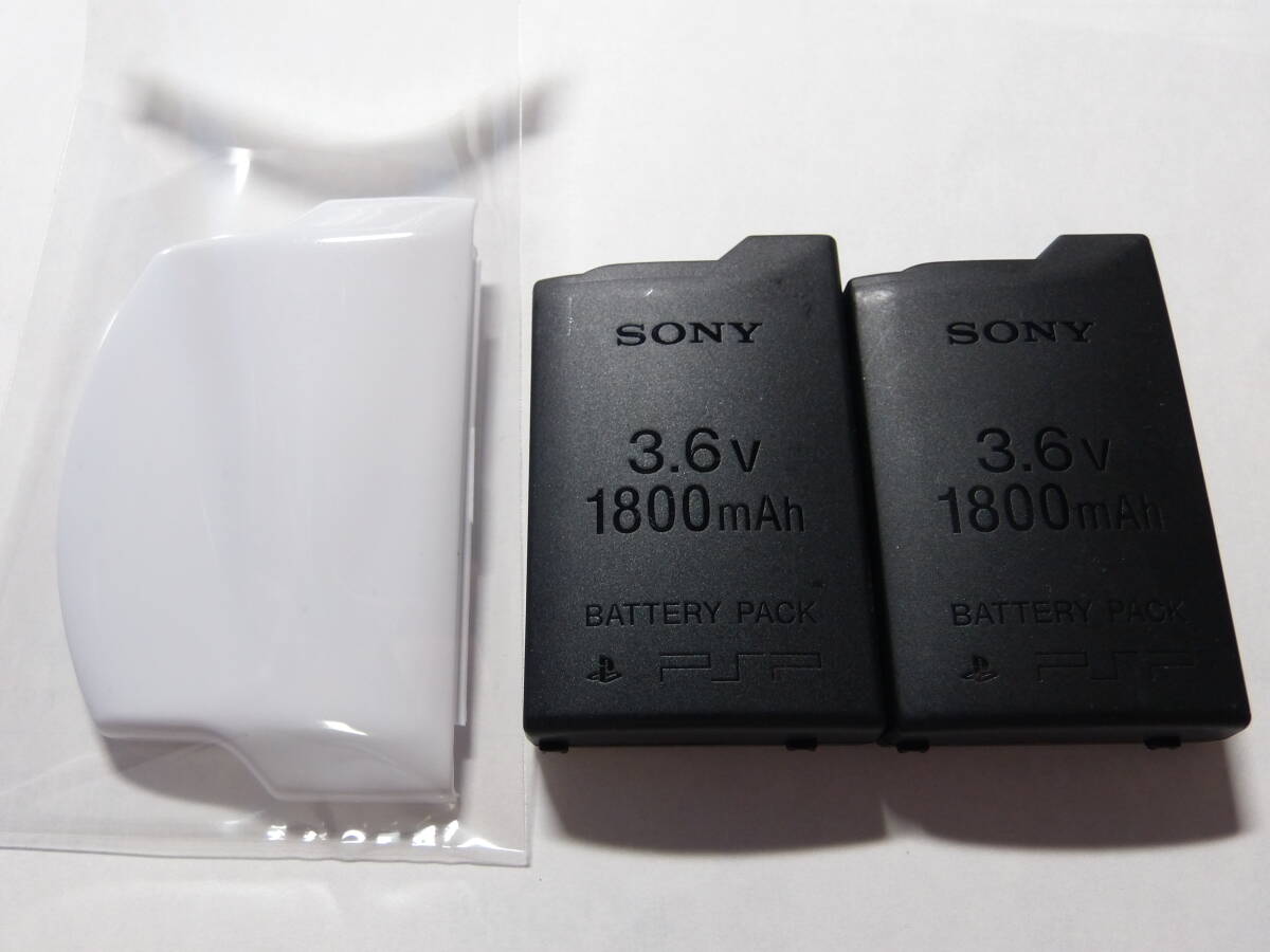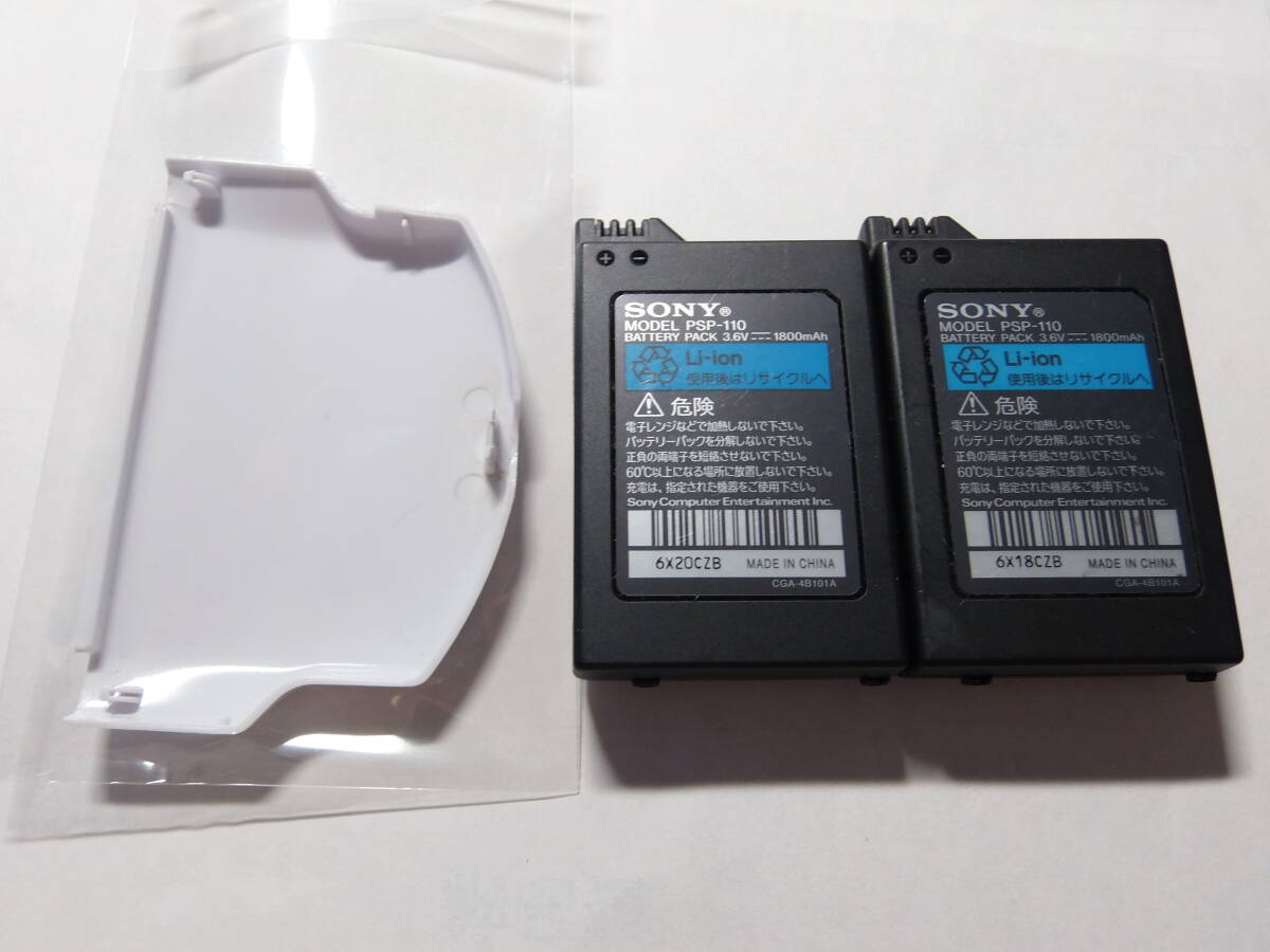 送料無料 比較的美品 バッテリー 2個セット PSP2000、PSP3000にも使用可能 大容量バッテリーカバー 未使用 PSP-110 SONY製 純正品