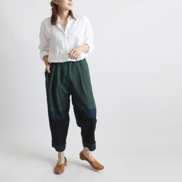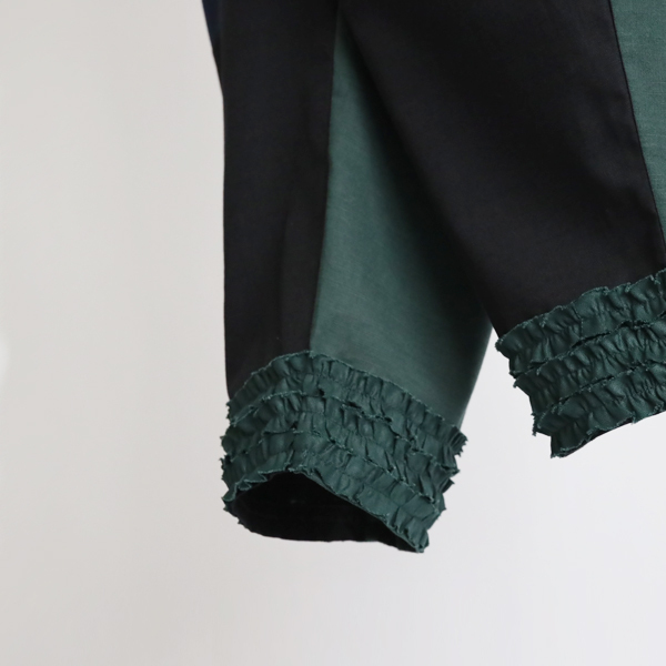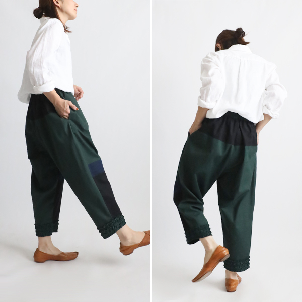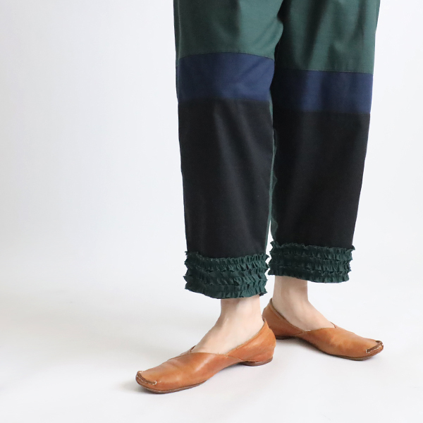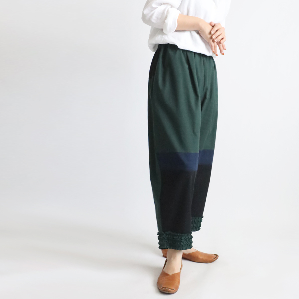 柔らかな3段の小花フリル裾が素敵なパンツ。