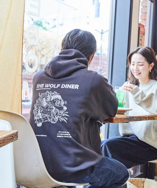 参考商品名:限定展開 SHE WOLF DINER×FREAK’S STORE/シーウルフダイナー 別注 ビッグシルエット バックプリント POパーカー/フーディー