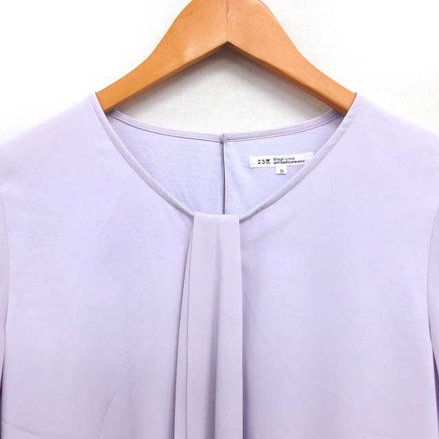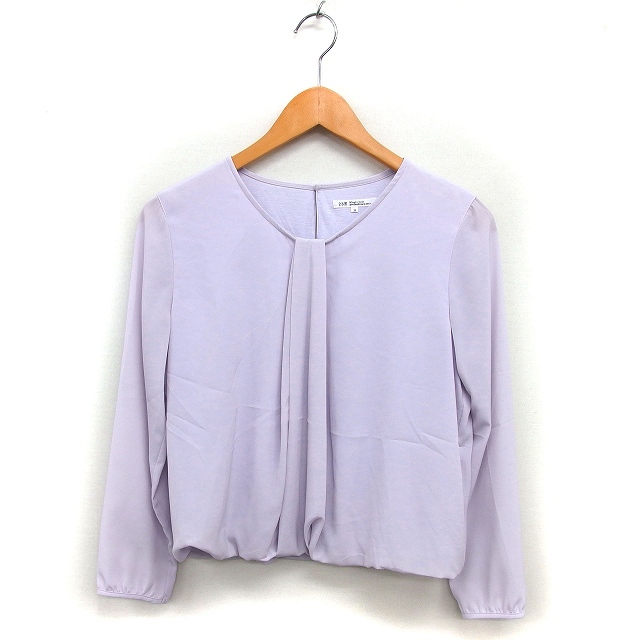 23区 オンワード樫山 タック ブラウス シフォン クロップド ラウンドネック 長袖 38 ライトグレー /NT17 レディース