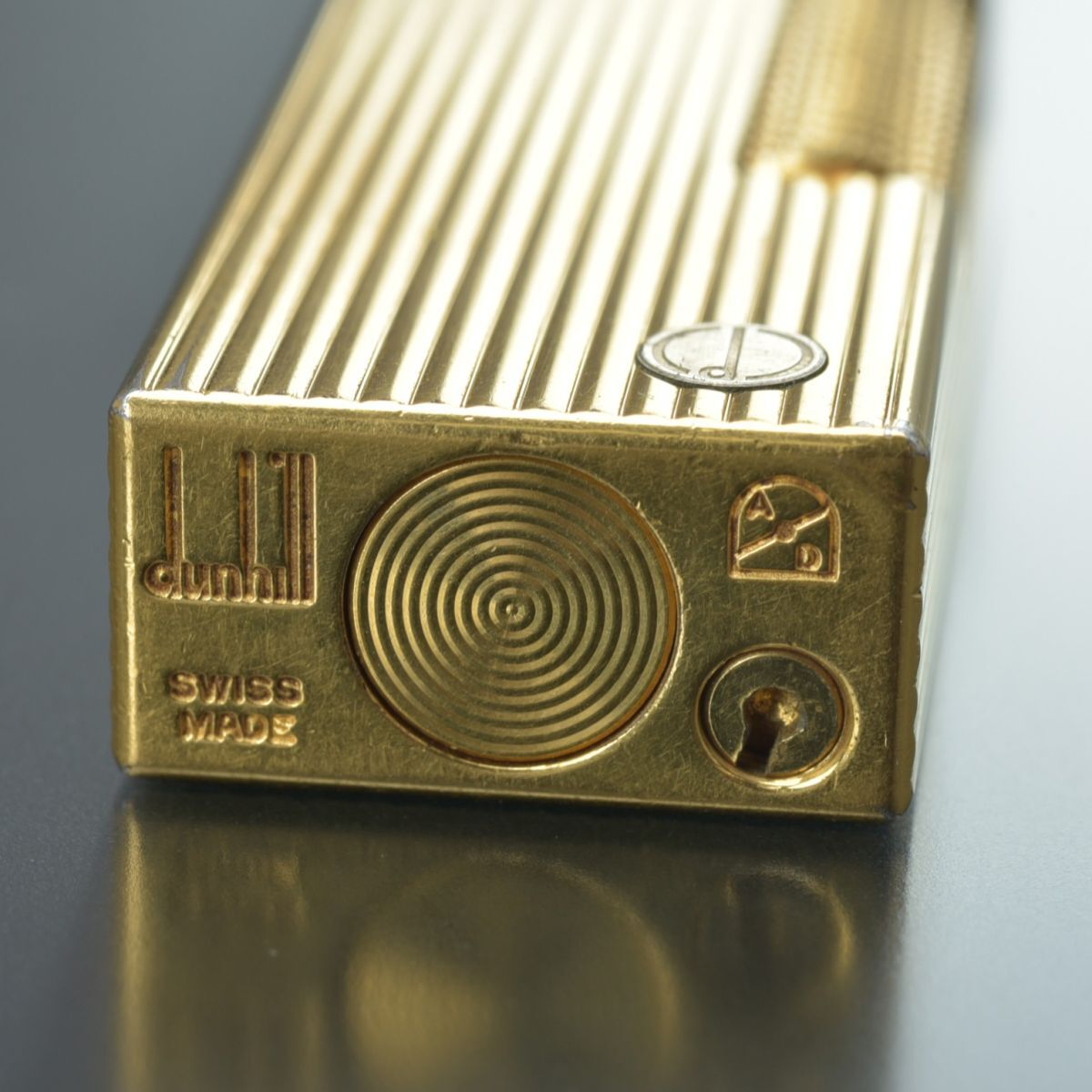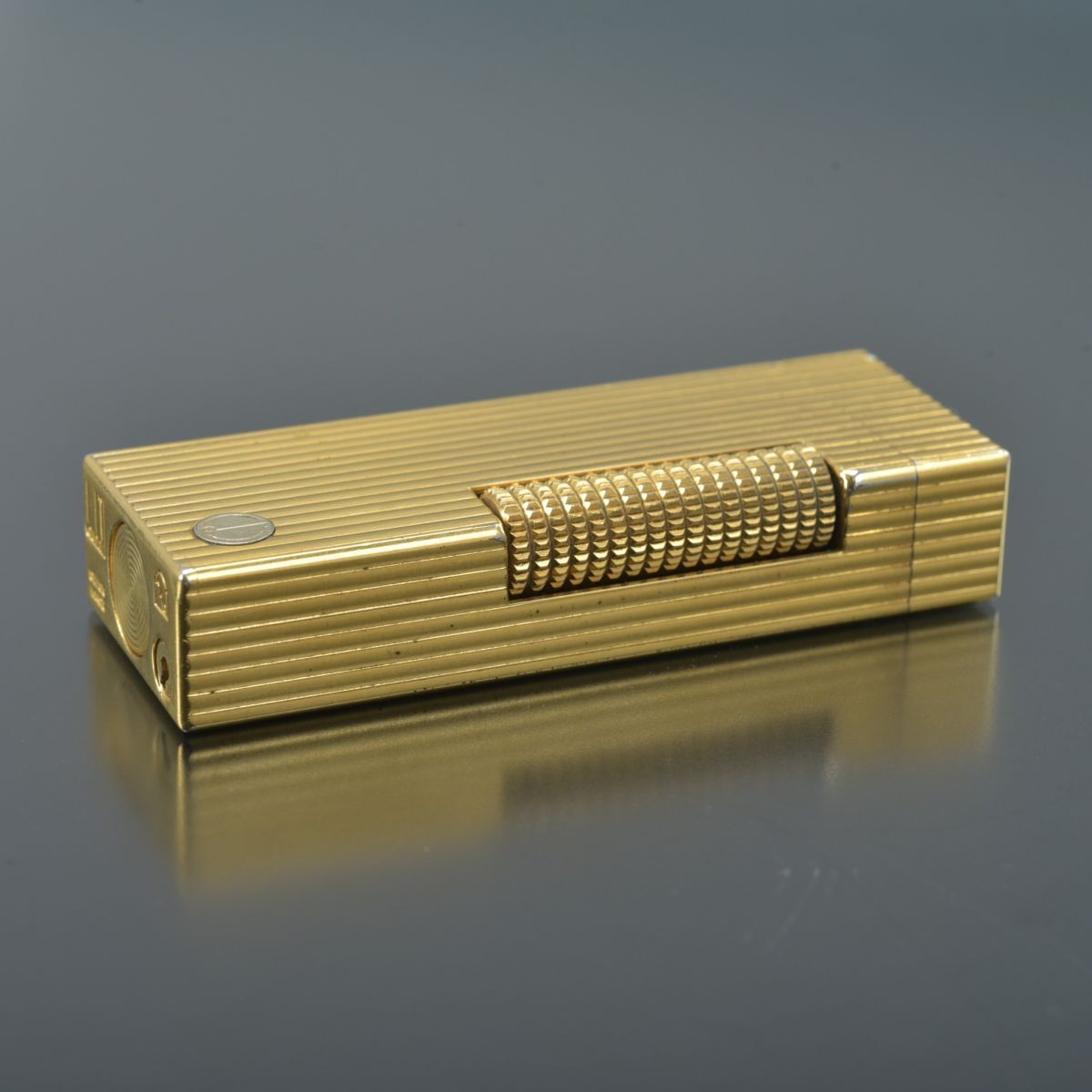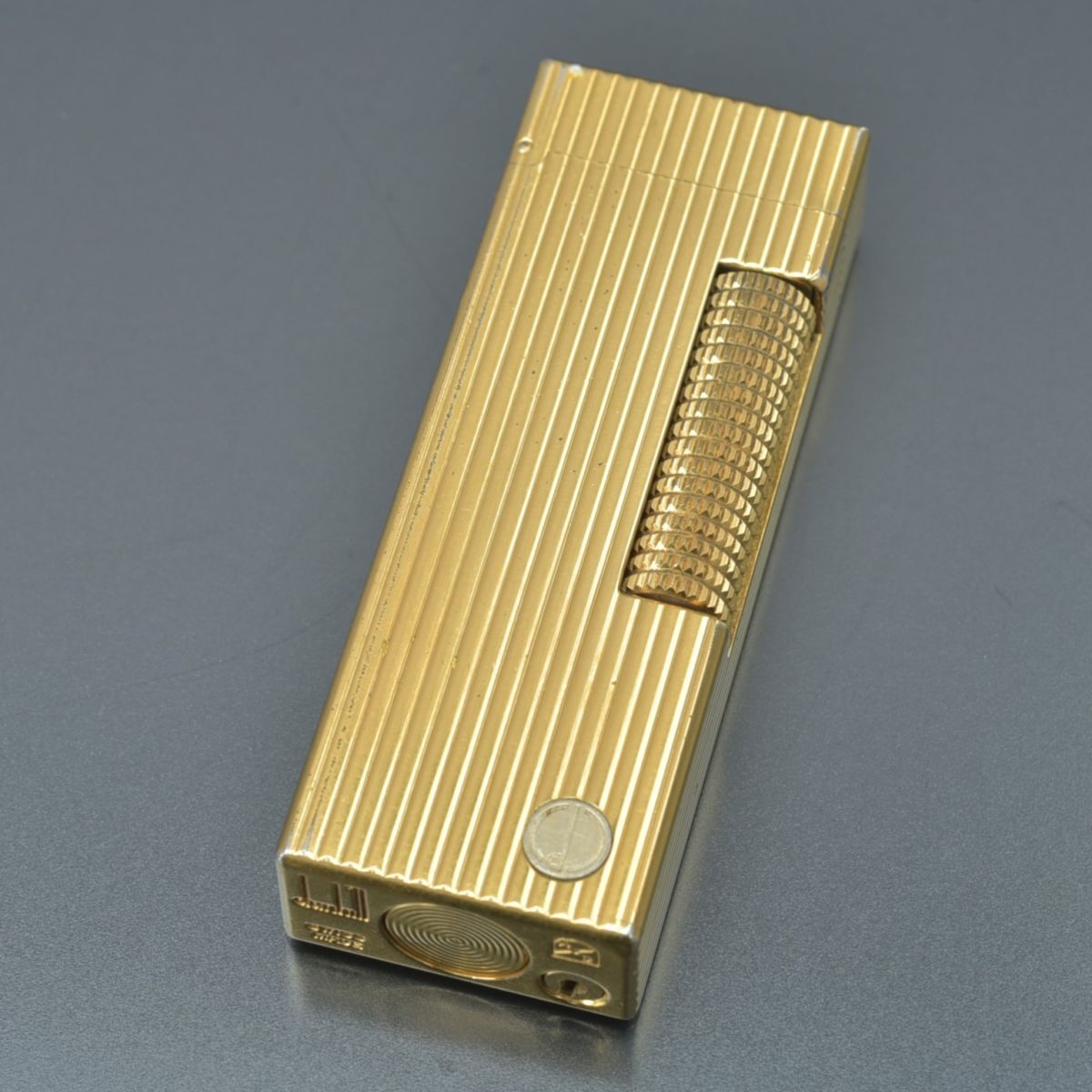 美品 ダンヒル dunhill ガスライター ローラー式 dロゴ ゴールド ストライプ