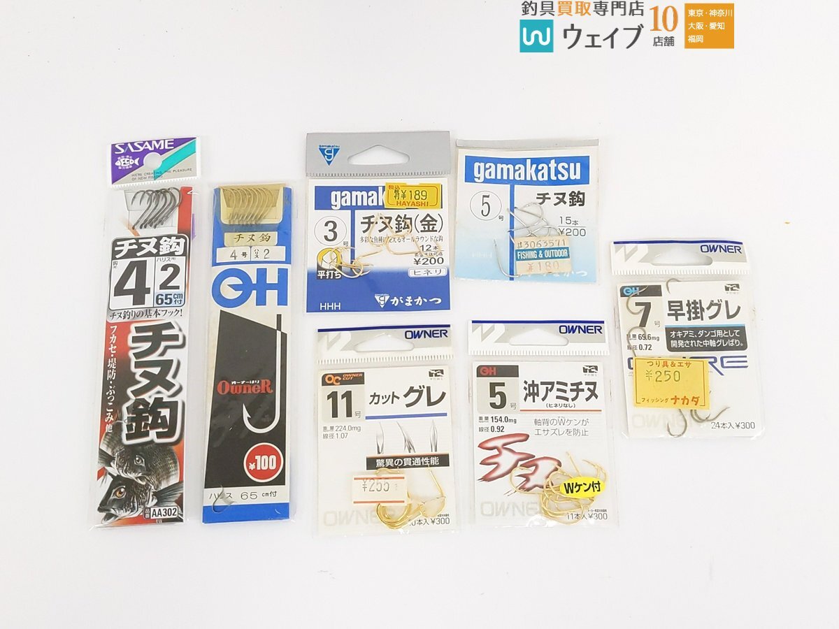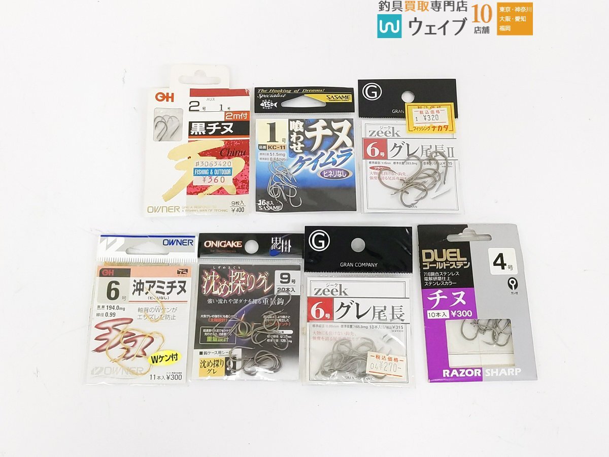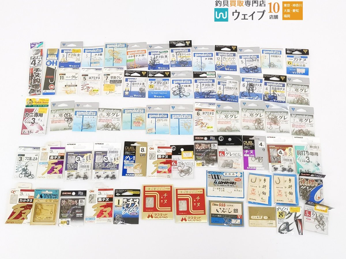 商品名 | がまかつ チヌ鈎(黒) 2号・オーナーばり カットチヌ 3号・ささめ針 ヤイバエックス 8号 他 計63点 釣り針セット |
