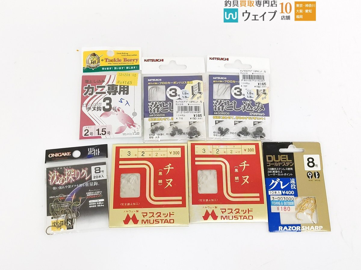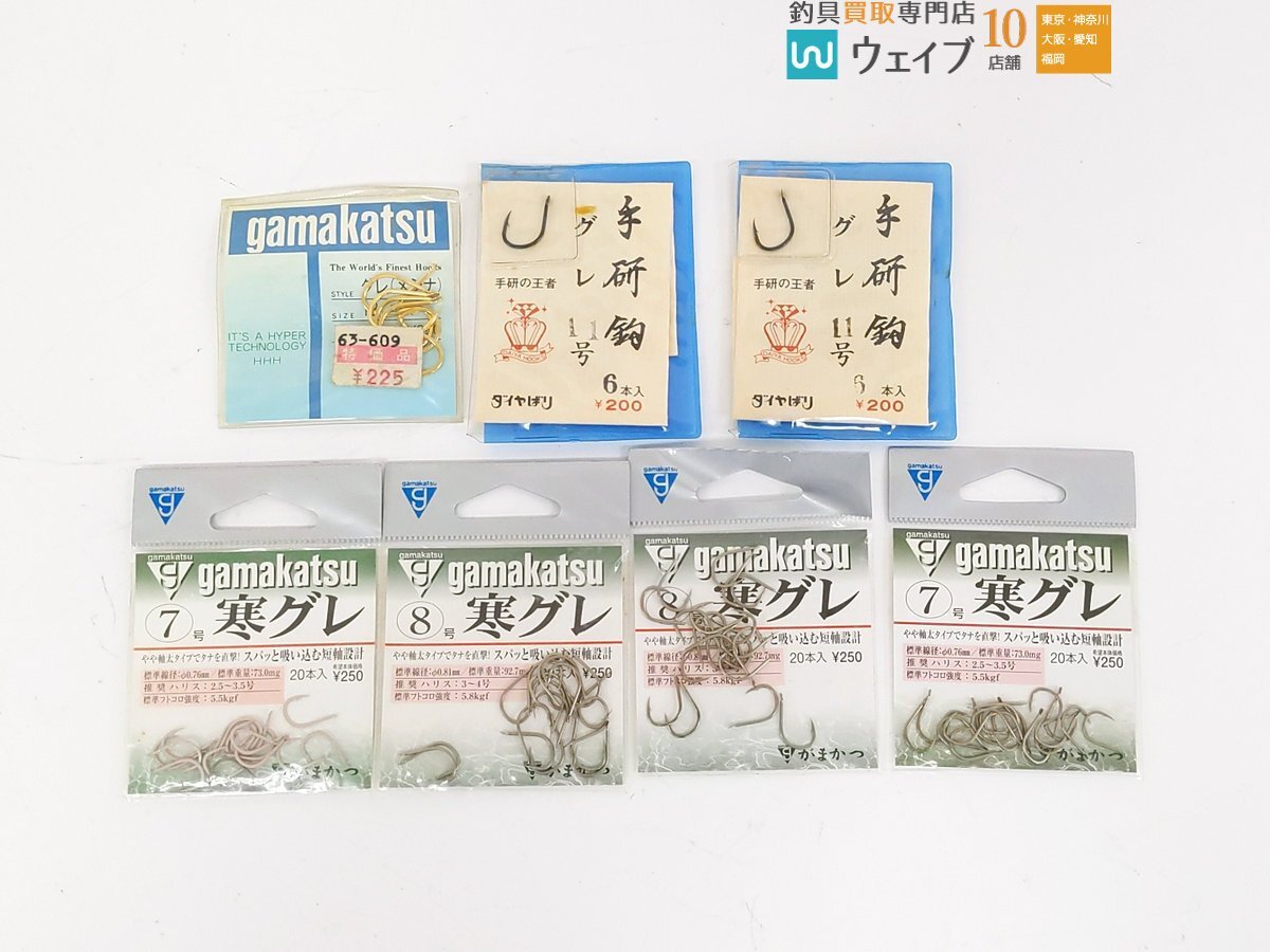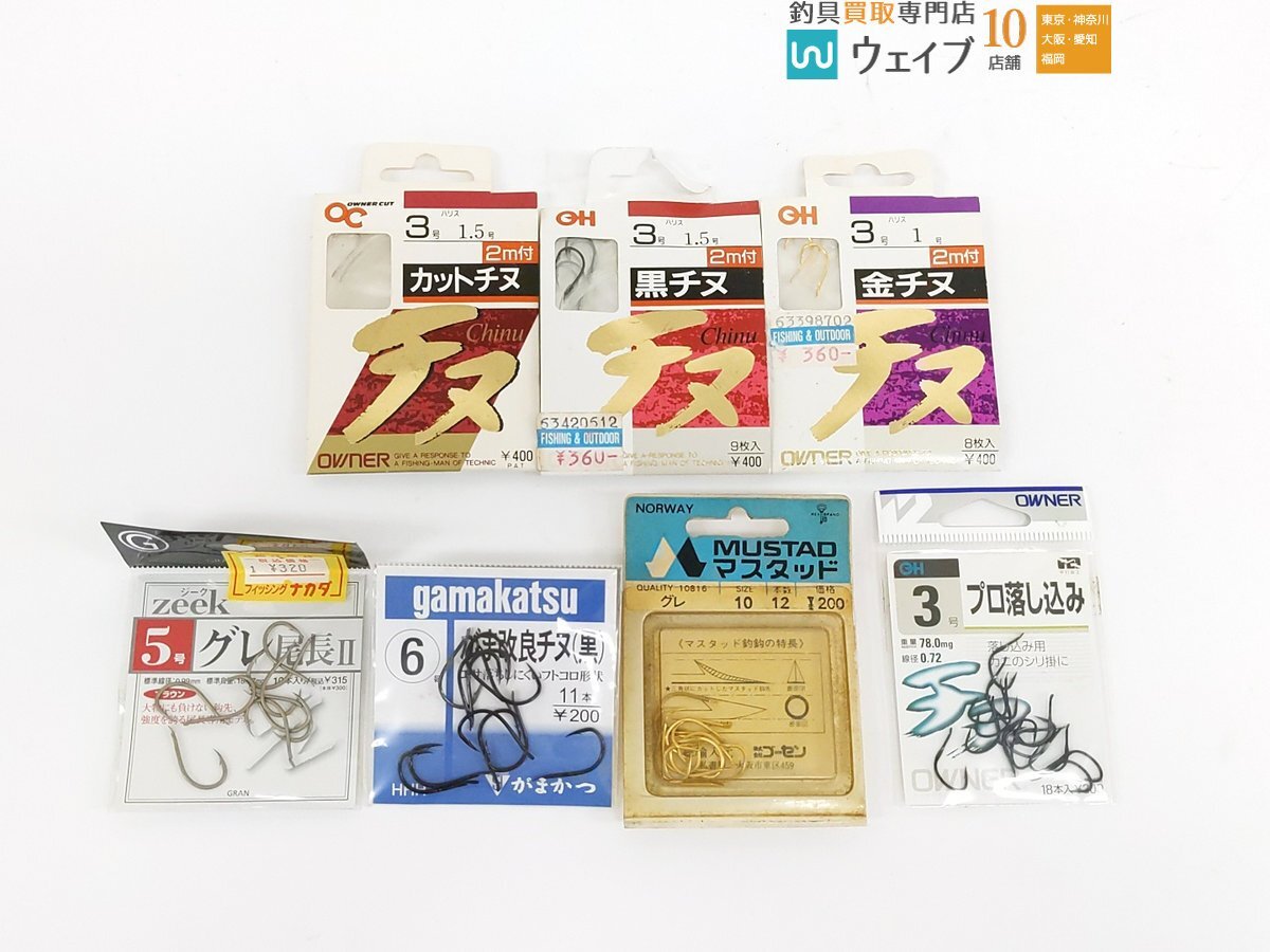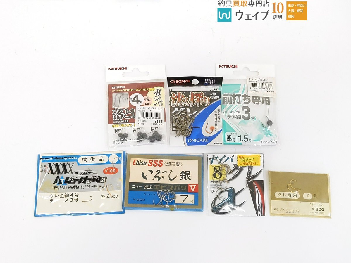 商品名 | がまかつ チヌ鈎(黒) 2号・オーナーばり カットチヌ 3号・ささめ針 ヤイバエックス 8号 他 計63点 釣り針セット |