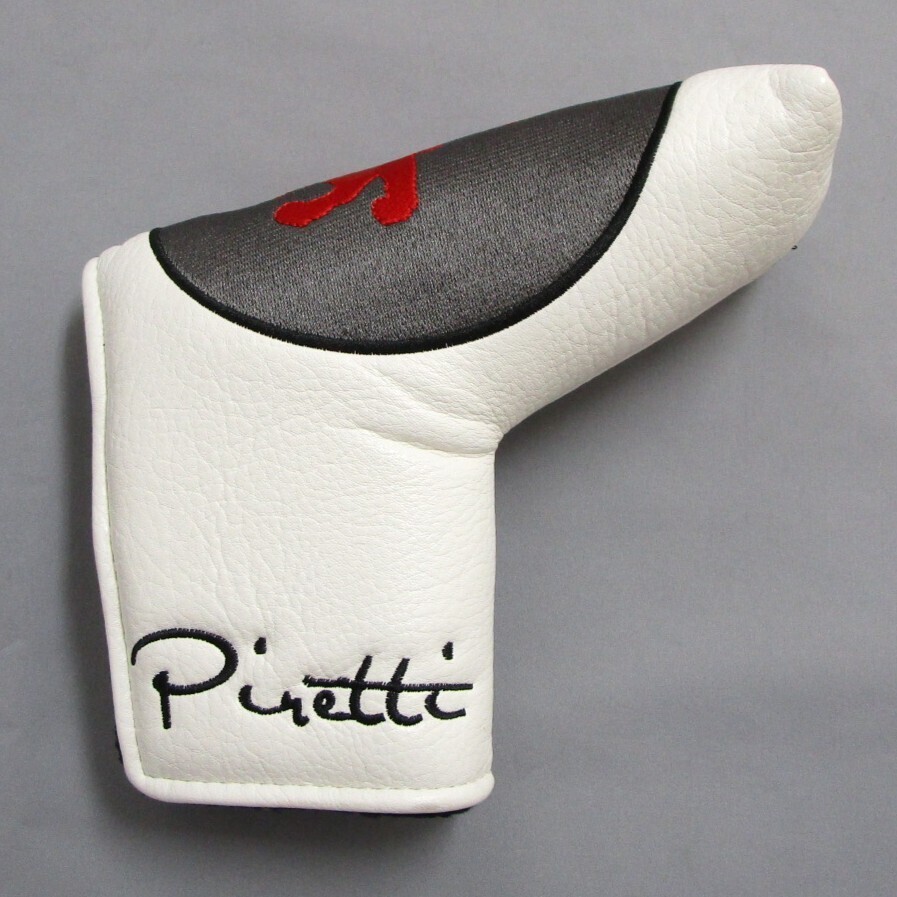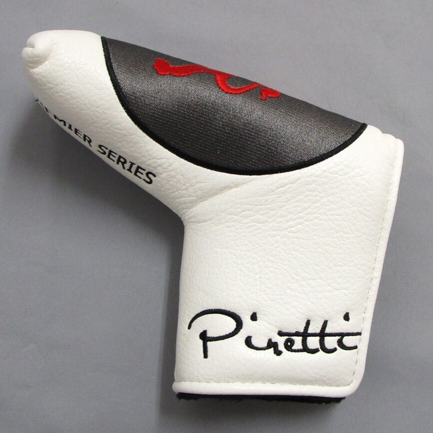 しっかりとパターを保護するソフトな生地に、マグネットによる開閉で取り出しもスムーズ デザイン性と機能性を兼ね備えたピレッティらしいパターカバー マグネット開閉式 品番:PR-PC0007 素材:合成皮革×刺繍 外形サイズ:ヨコ最大約17cm/タテ最大約13cm/ブレード部分幅最大7cm ※外形からの採寸ですのであくまでも目安としてお考え下さい。 | |||||||||||
