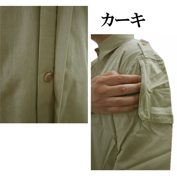TWENTYFIVE (トゥエンティーファイブ)半袖シャツ BD283 カ-キ(L)です。 ■素材 コットン100% ■サイズ 身幅約55cm 着丈約64cm 着丈約82cm ■特徴 フロントは比翼仕立てでボタンが隠れますので、シンプルな着回しに便利な1枚です。 両肩にボタン付きで、左そでにZIPポケット付き。 | ||||||