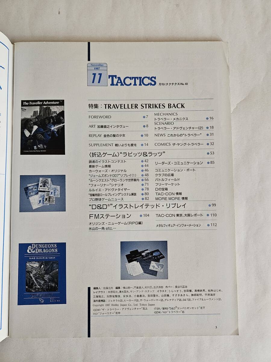 【1円スタート】ホビージャパン「タクテクス No.48 1987年11月号」付録ゲーム無し