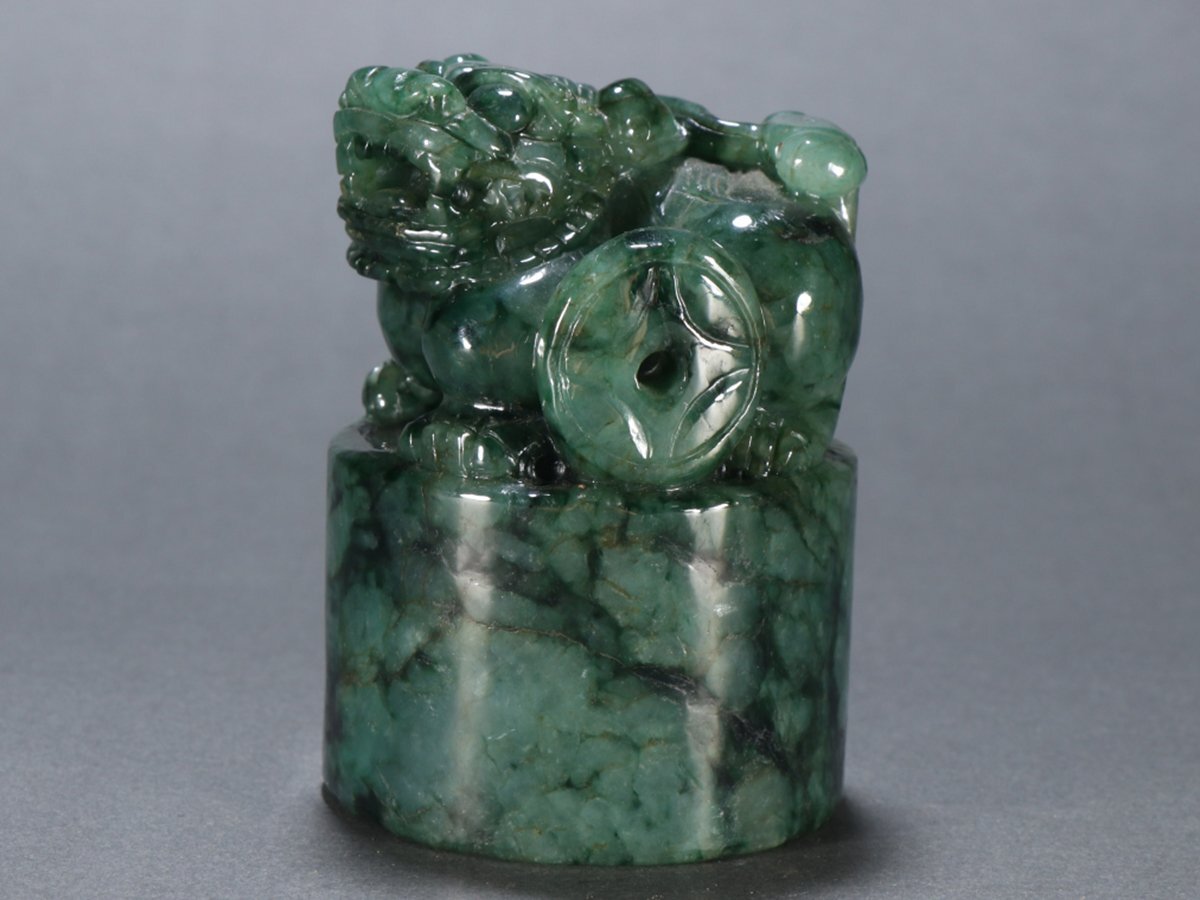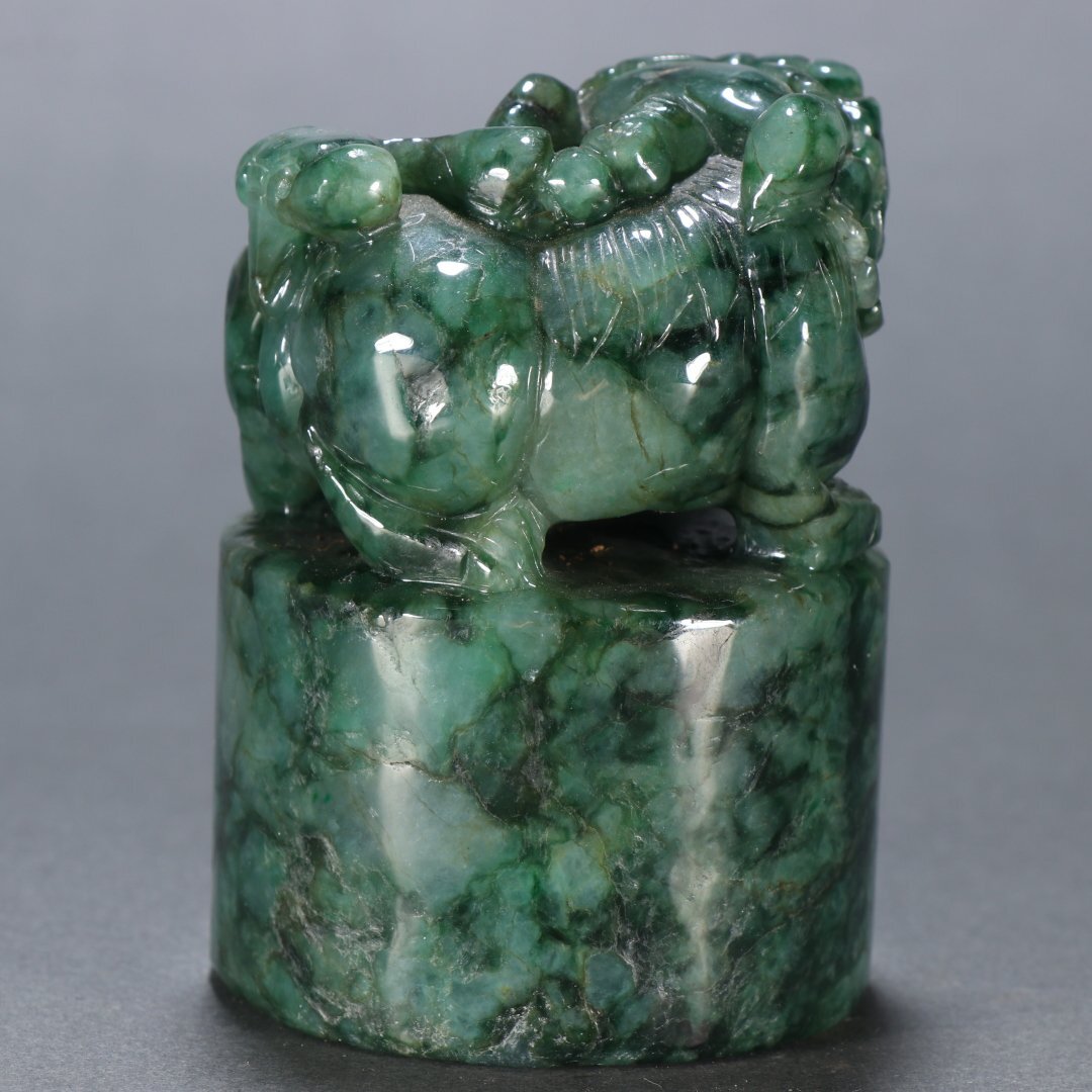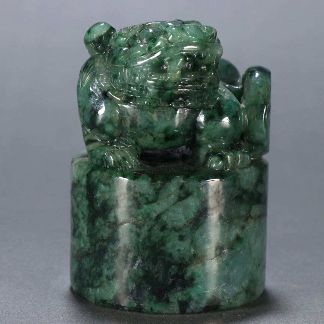 【安】清時代 翡翠 貔貅鈕素章 印材 極細工 古置物 古擺件 中国古美術 古美味 時代物 古董品 273 サイズ(約寸) |