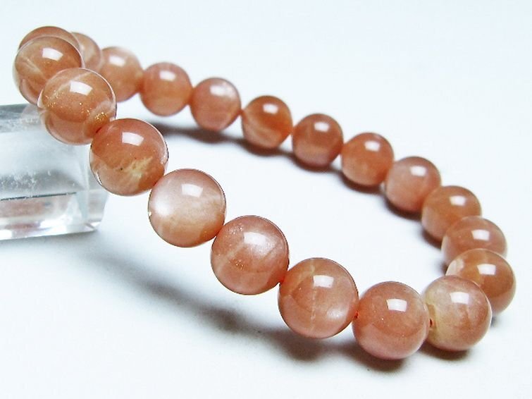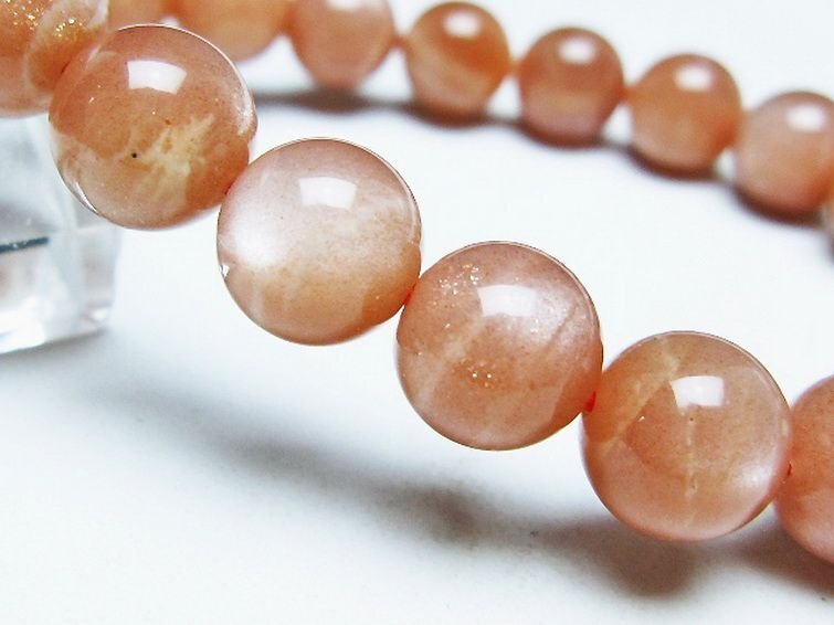 ■商品名: オレンジムーンストーンブレスレット ■商品ID: T347-5588 ■商品重量:約 29.9g ■商品サイズ:内周約:167mm(±5mm)粒直径約:10mm(±0.5mm) 【ムーンストーン(月長石)】 ムーンストーンは長石の一種で正長石(オーソクレース)を主としアルバイト(曹長石)成分を含んでいます。そのために美しいシラー効果が確認できます。乳白色や半透明のものが一般的ですが、他にも青やオレンジ等の様々な色が確認されています。柔らかい月の明かりのような光沢を持ち、真珠を思わせるような上品な石です。 ムーンストーンは古来より月の光が宿る石とされてきました。灼熱の国インドでは月は安らぎの象徴とし崇められてきましたが、その月の力を宿した聖石としてムーンストーンを身に着けていたそうです。 月の光のような柔らかな波動を持つムーンストーンは、心配や緊張を解きほぐし、心や情緒を安定させる効果があるとされていることからうつ病やノイローゼを防ぐとされています。また感受性や危機を察する直観力が高まるとされ、厄除けになることから旅人の守護石ともされています。 自分の中にある潜在能力を高め、ひらめきをもたらしてくれるとされていますのでクリエイティブな職業に携わっている方にお勧めしたい石です。 恋愛面においては「恋人たちの石」と呼ばれ、互いの絆や愛情を深めるために恋人への贈り物ともされてきました。またお目当ての異性に贈ると、恋が芽生えたり、友情が愛情に変わるとも言われています。一度終わった関係を復活させる等、別れた恋人同士を再び結びつけるという伝承もあります。遠距離恋愛の守護石としても有名です。変わらない愛情と優しい情熱を盛り上げてくれるそうですので、夫婦で持つのもお勧めです。 ■ワンポイント情報 月は女性性を象徴し、女性の身体の調子も月の満ち欠けに関わっているという説は有名です。ムーンストーンは女性特有の身体の不調や更年期等のイライラを鎮めてくれるとされています。また生理痛、不妊、出産の痛みを改善し、安産のお守りともされています。 暗い夜道を照らす月の光のように、闇の悪霊を祓い、危険を察知する感が良くなるとされていますので、夜道を歩いて帰宅する女性はお守りとして一つ持つと良いかもしれません。 |