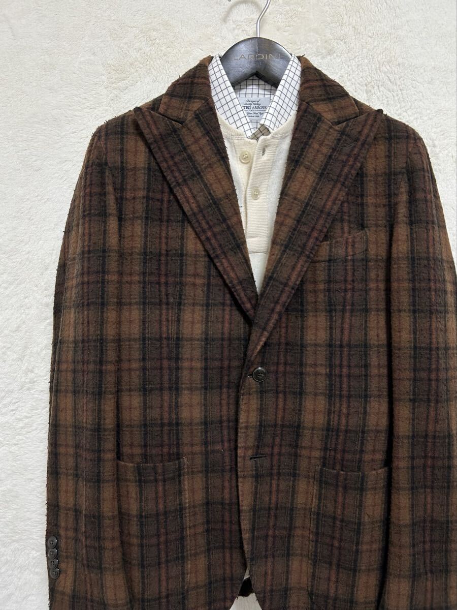 *生地ナッピング加工されたウール起毛素材を使用し、更に製品で洗い加工された手の込んだテーラードジャケット。