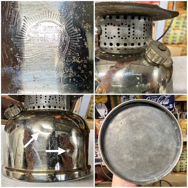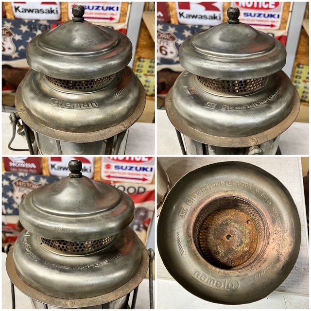 Colemanのランタンの魅力は、 美しさもさることながら、各部品の頑丈さと精度の高さと、 何と言ってもランタンとしての実用性の高さです。 どんなに古いランタンでもキチンとメンテをしてあげれば 必ず使えるようになります。 当店の商品は、出来る限りオリジナルの状態を 保つようにしています。 何十年も使い込まれたランタンには個体ごとに味があります。 そのヤレた感じを大切にするようにしています。 ただし、ランタンは道具であり使えなければ意味がありません。 可能な限り当時の部品を生かしつつ、必要に応じて 部品の清掃・交換をしてすべてのランタンについて 着火と灯火時間検査を実施し出品しております。 是非ともコレクションの一つとして頂ければ有難いです。 誠意を持って良い商品を出品して参りますので 末永くよろしくお願いいたします。 | |||||||||||||||||||||||