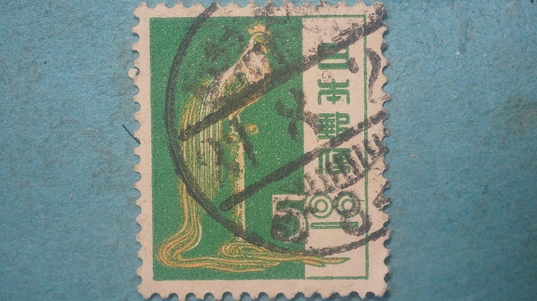 動植物国宝図案切手 使用済 尾長鳥 5円 濃い緑 7