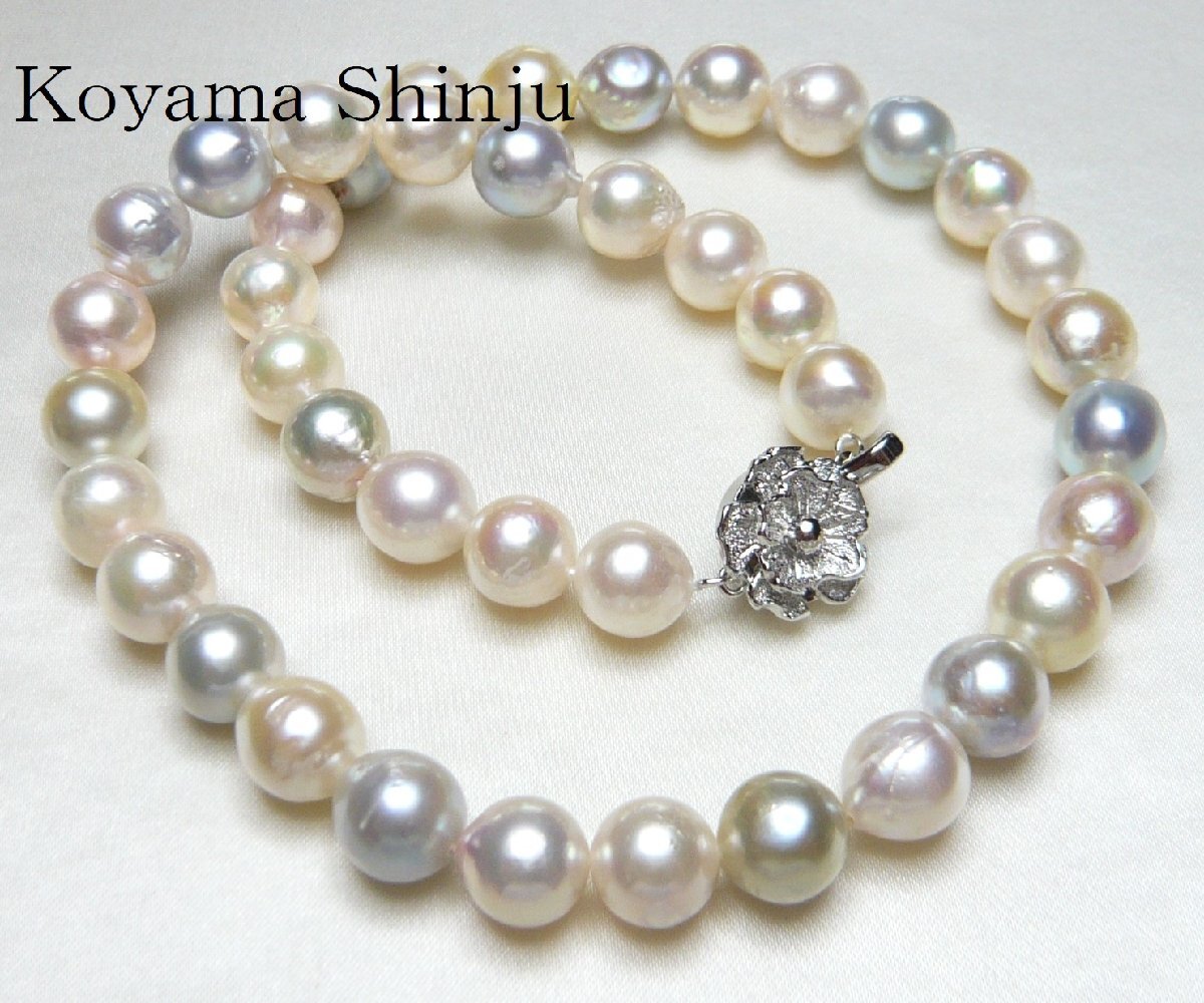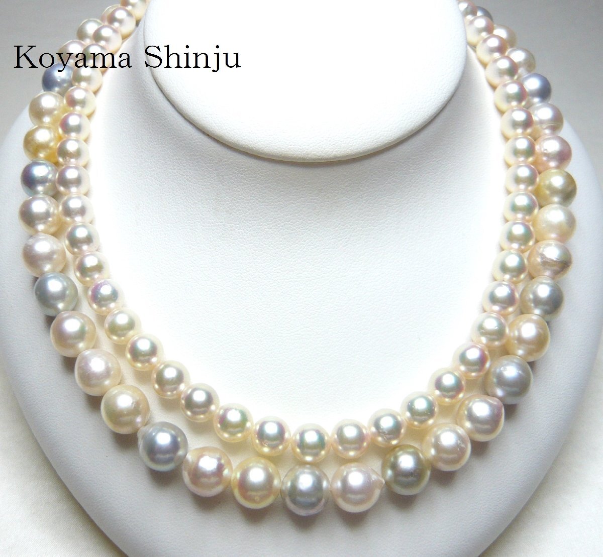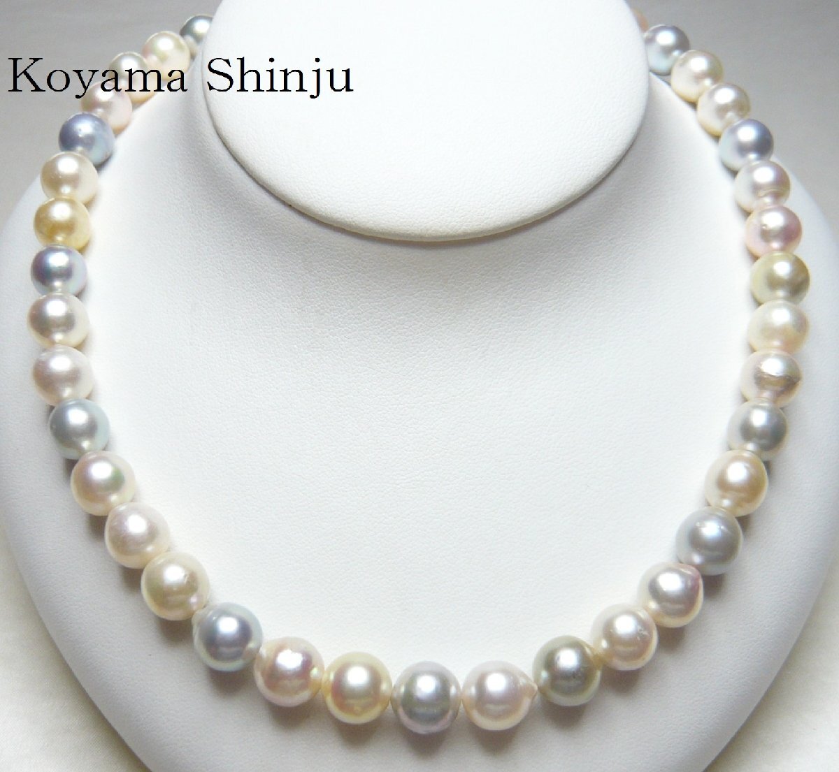最新デザイン!美色カラー!マルチカラー連♪特大9.5-10.0ミリ!あこや本真珠パールネックレス |