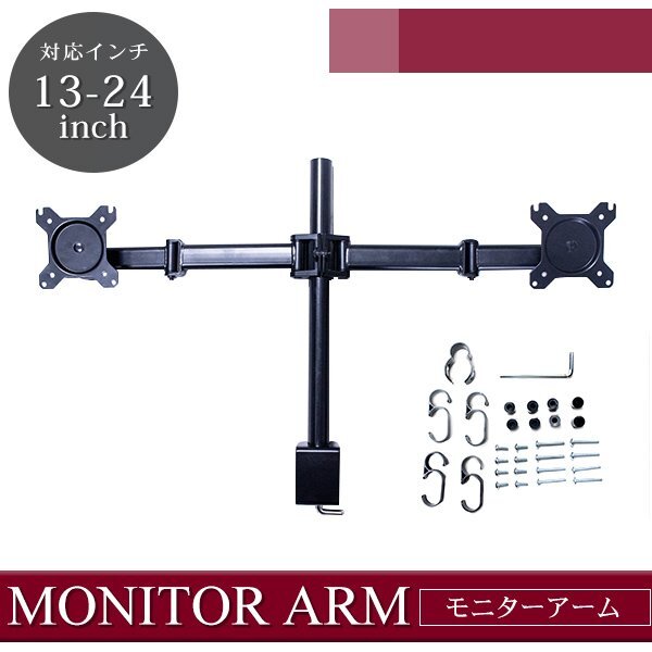 オフィス デスク モニターアーム 13インチ~24インチに適用 モニターブラケット 角度調整可能 パソコン 追加モニター ツイン画面