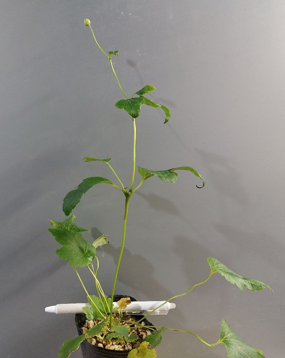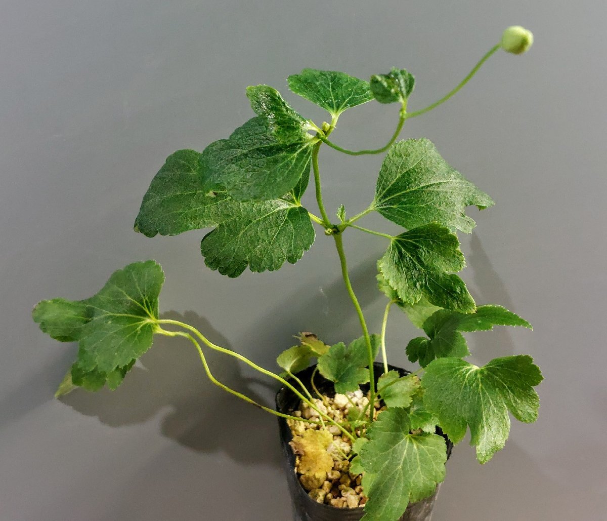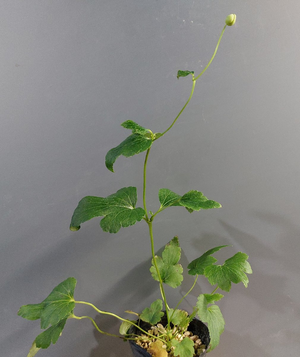 キンポウゲ科の野生種のシュウメイギクの青軸白花の珍品です。一重咲きです。