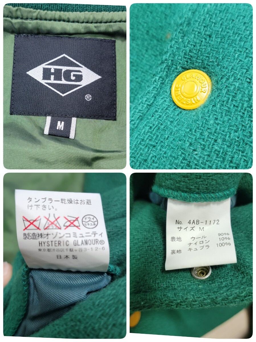 00S Y2K ヒステリックグラマー HYSTERIC GLAMOUR エイチジー HG スタジャン M WOLF CITY ブルゾン 緑スタジアムジャンパー