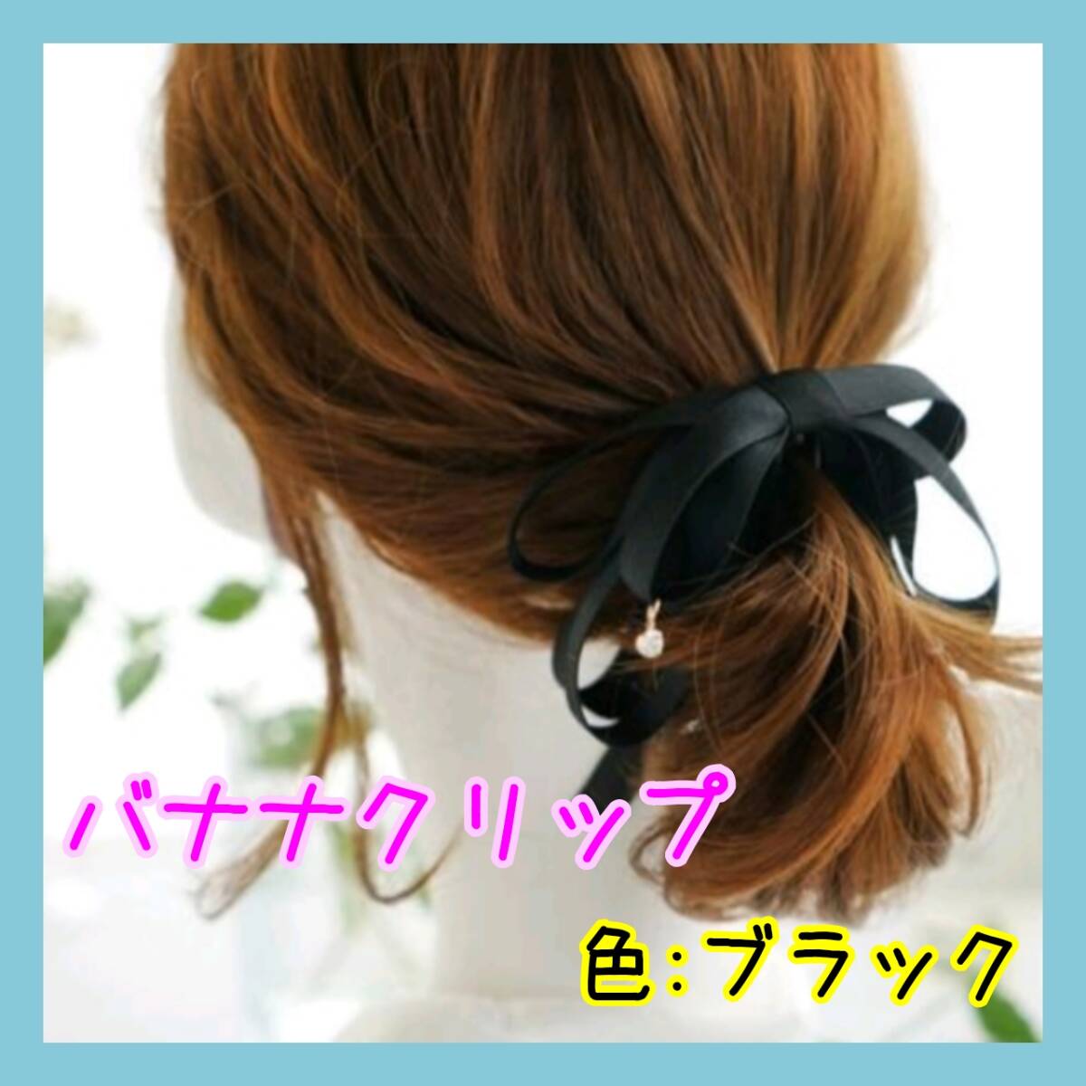 バナナクリップ ヘアクリップ ポニーテール リボン ブラック