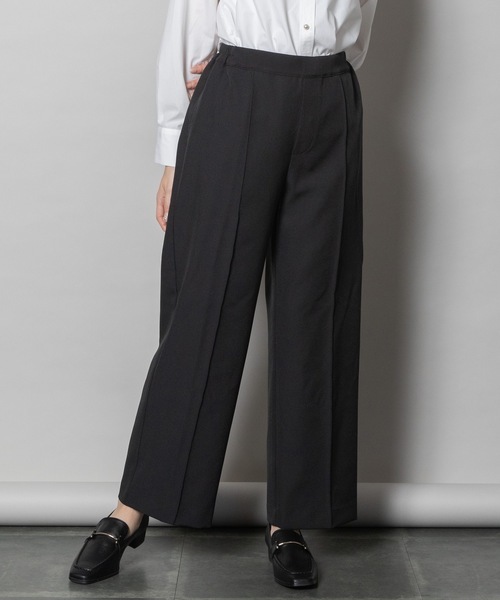 キーワード:スラックス パンツ レディース ウエストゴム ストレート ストレッチ センタープレス フルレングス レギュラー ワイドパンツ 無地