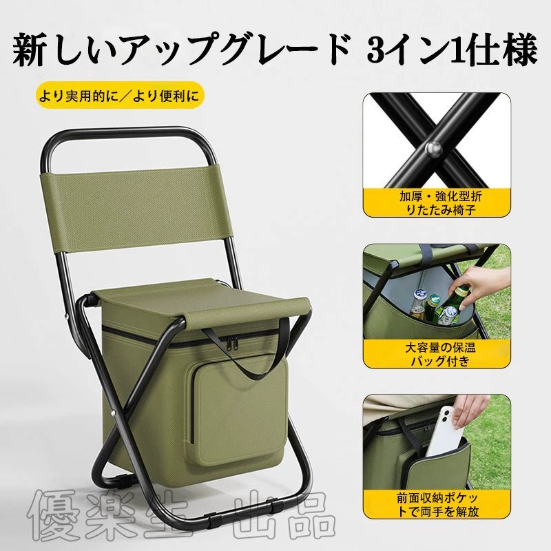 こちらは、保冷バッグを内蔵した多機能折りたたみスツールです。キャンプ、釣り、ピクニック、公園でのランチ、運動会、フェスなど、さまざまなシーンで大活躍。