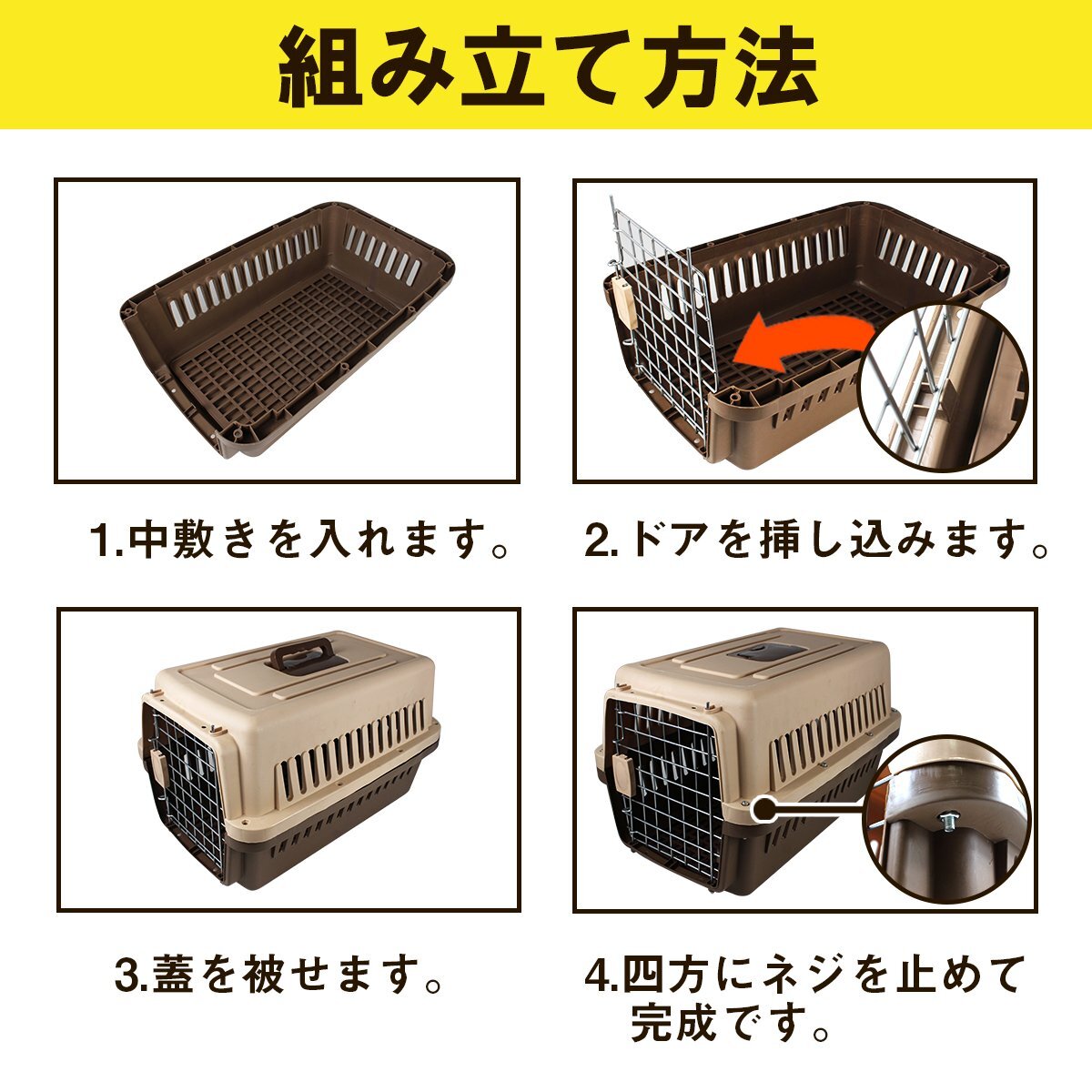 ペット用 ケージ Mサイズ 幅36×奥行き58×高さ34cm ブラウン/茶色 ケージ ハード キャリー ケース ゲージ ハウス 犬 猫 旅行