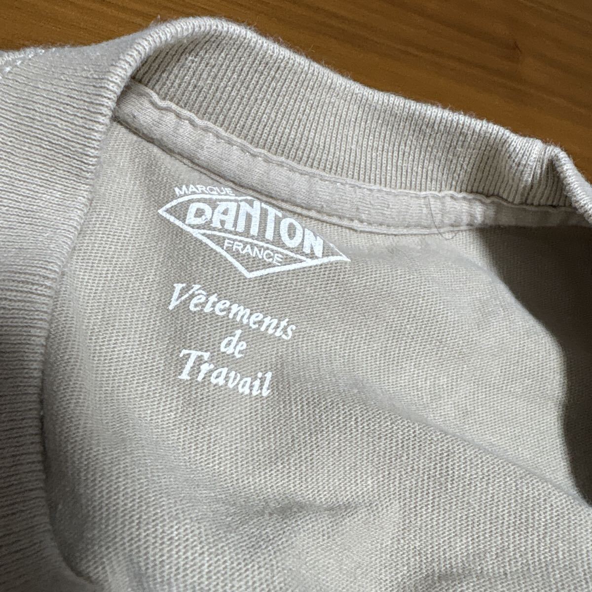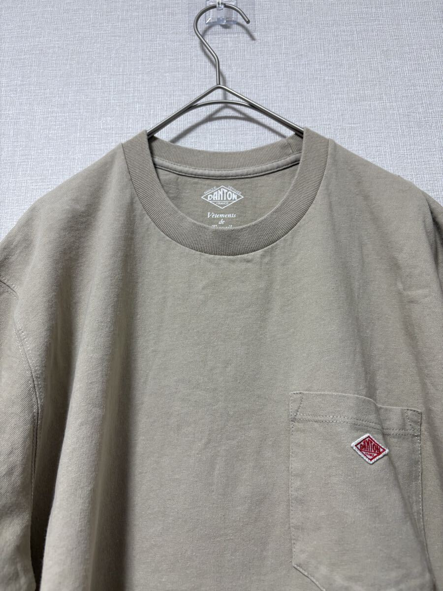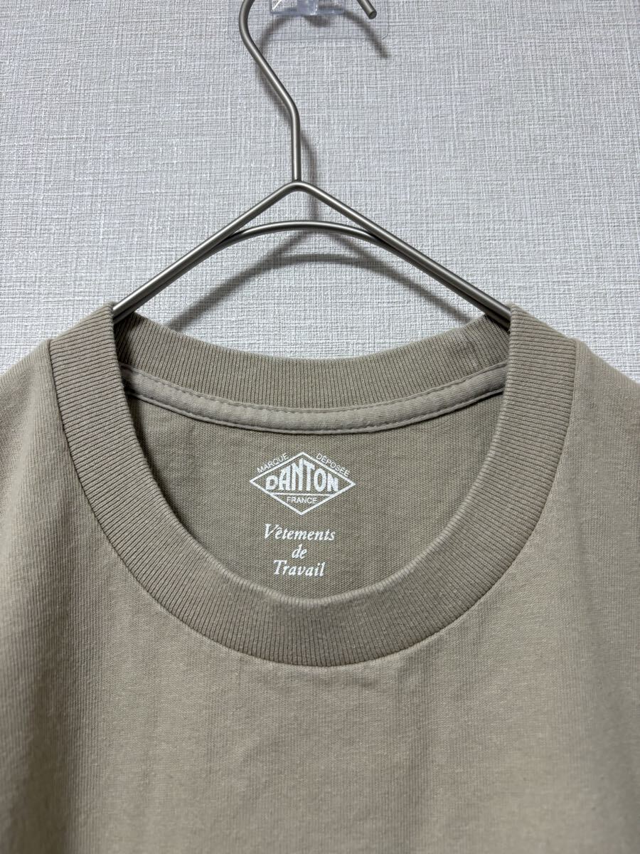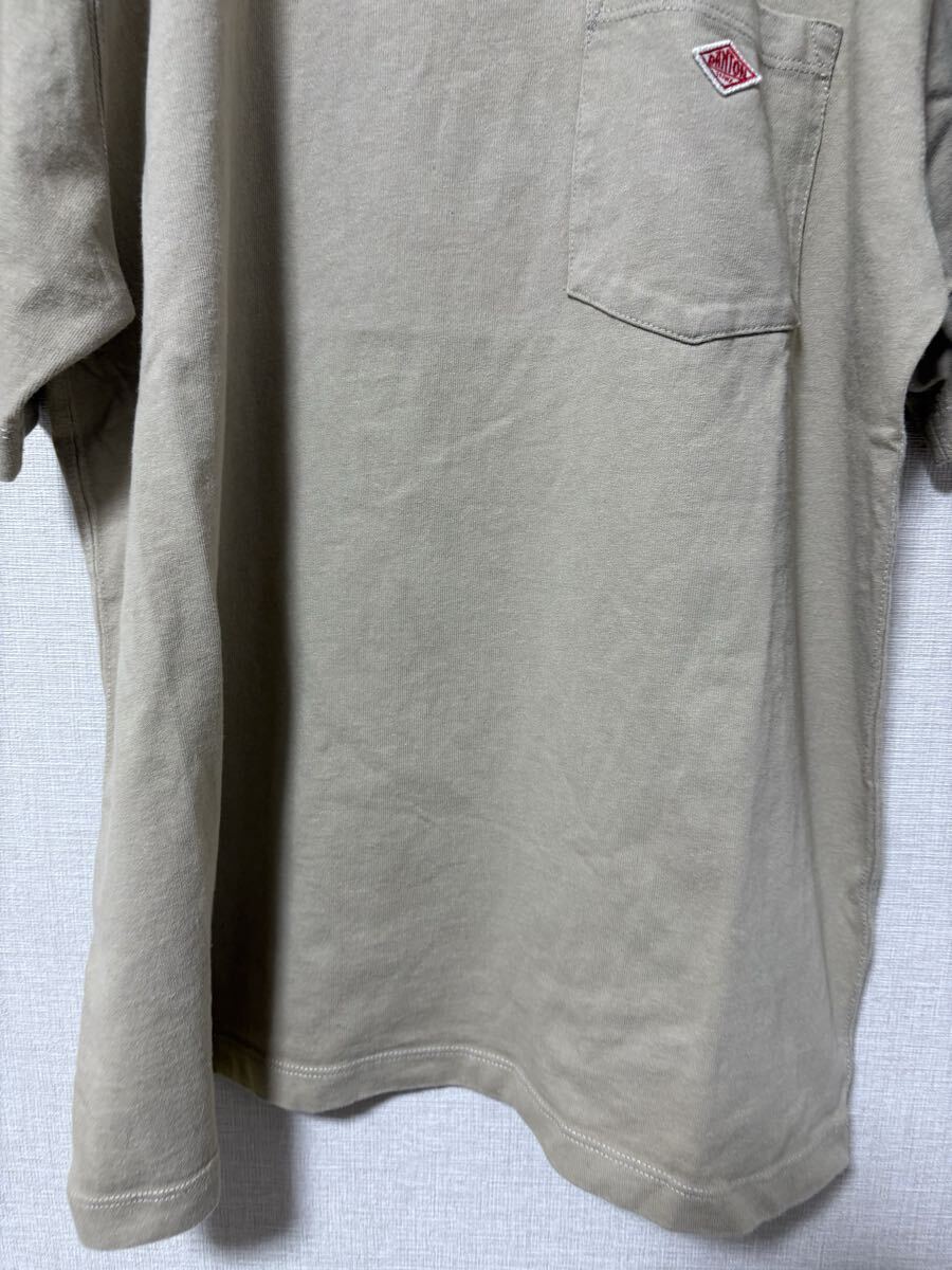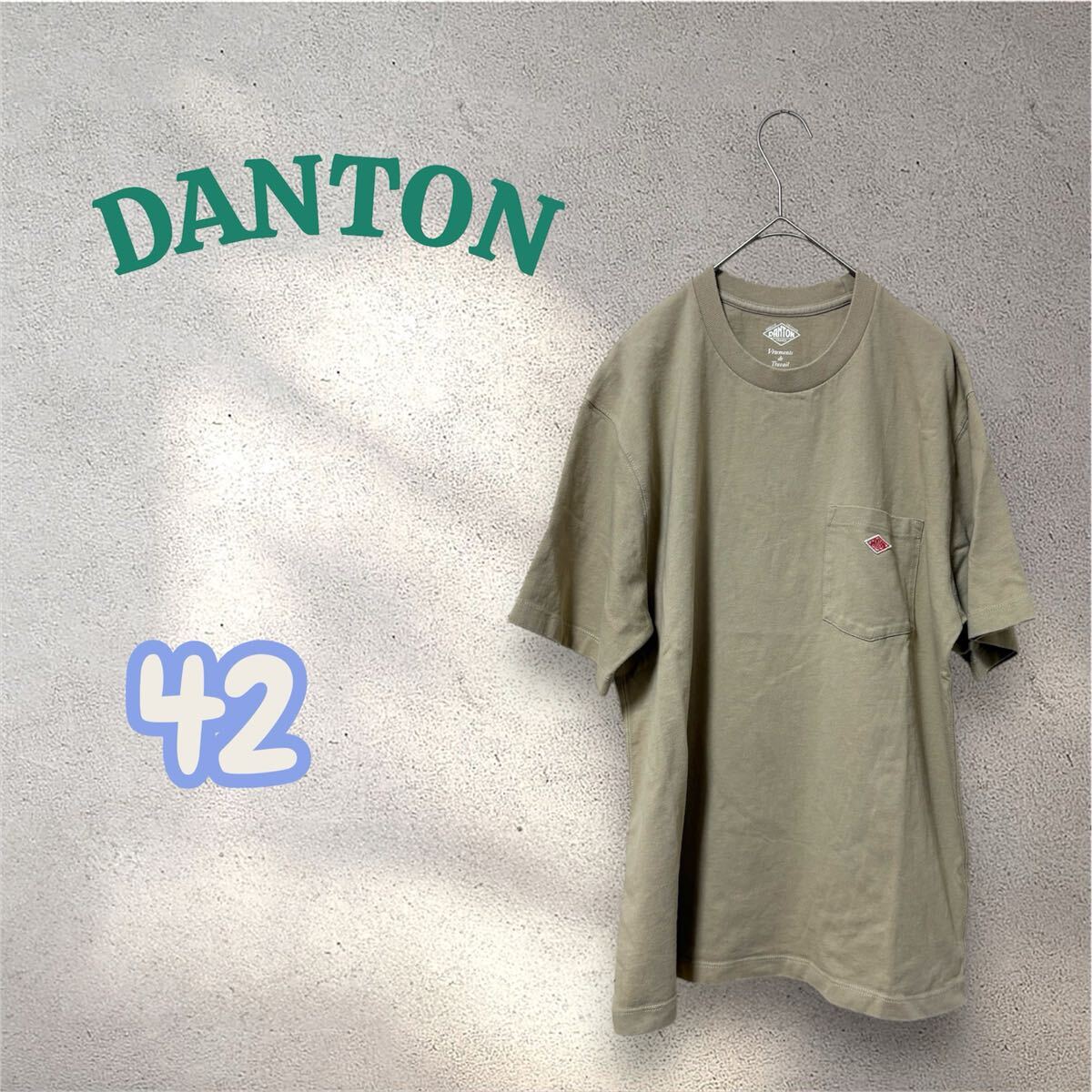 カーキ色のDANTONポケットTシャツ、サイズ42、コットン素材。