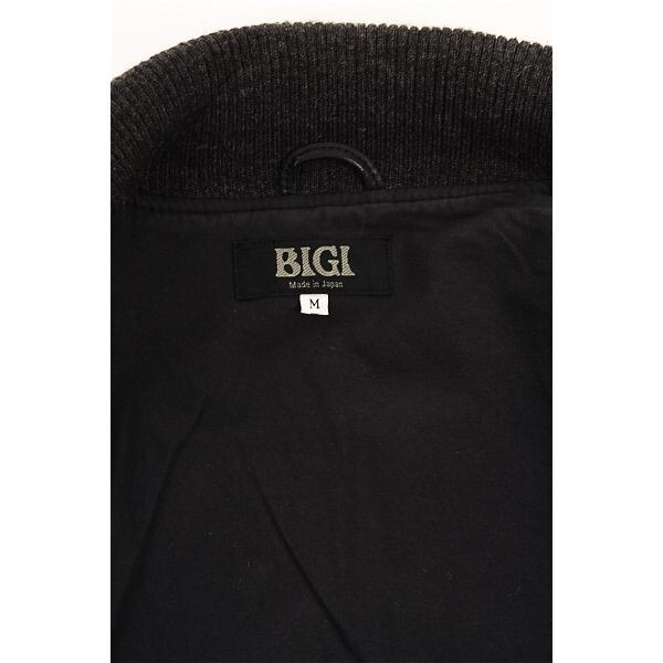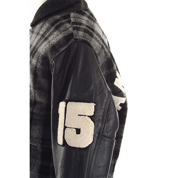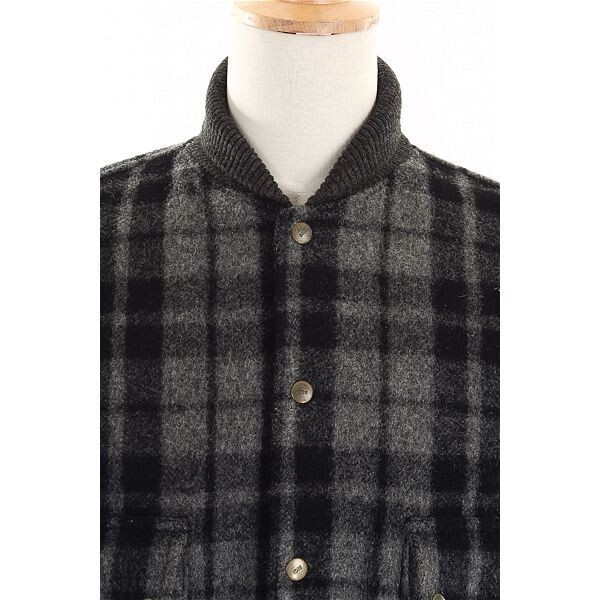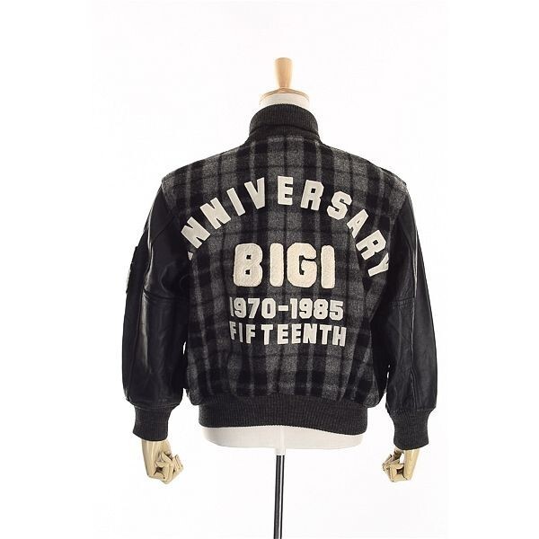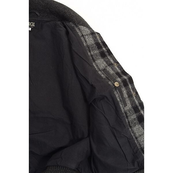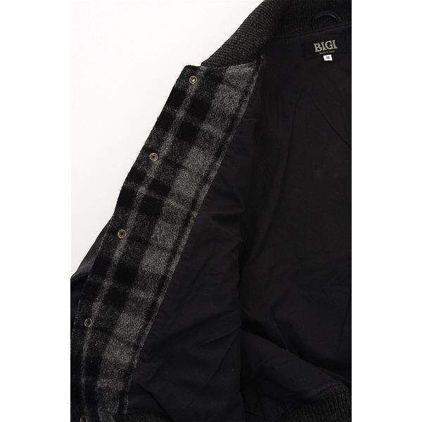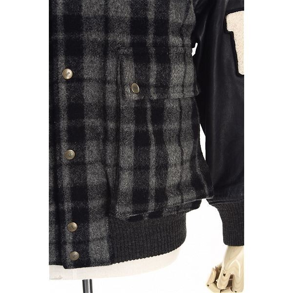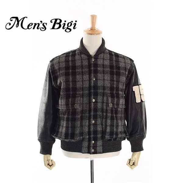 A4836/ビンテージ 80s 秋冬 MEN'S BIGI メンズビギ ウール メルトン チェック 羊革 袖レザー スタジャン ブルゾン ジャケット M 黒/メンズ