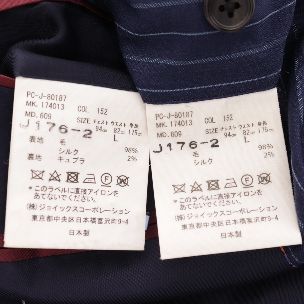 | ポール・スミス スーツ コレクション セットアップ アウター ボトムス ストライプ ポケット裏地花柄 メンズ L ブルー系 付属品付き 付属品:写真のものが全てです 【上着】 ●表記サイズ:L ○実寸 着丈:72cm 肩幅:45cm 身幅:50cm 袖丈:64cm 【パンツ】 ●表記サイズ:L ○実寸 ウエスト周り(平置き幅×2):82cm 股下:78cm わたり:32cm すそ幅:18.5cm 前股上:26cm ヒップ:104cm ⇒ アパレル商品のカラー基準・採寸方法・海外サイズ換算表 (参考)トルソー(マネキン)は男女ともMサイズです。 素材:【ジャケット】 【表地】 毛 98% シルク 2% 【裏地】 キュプラ 【ボトムス】 毛 98% シルク 2% | ||||||||||||||||