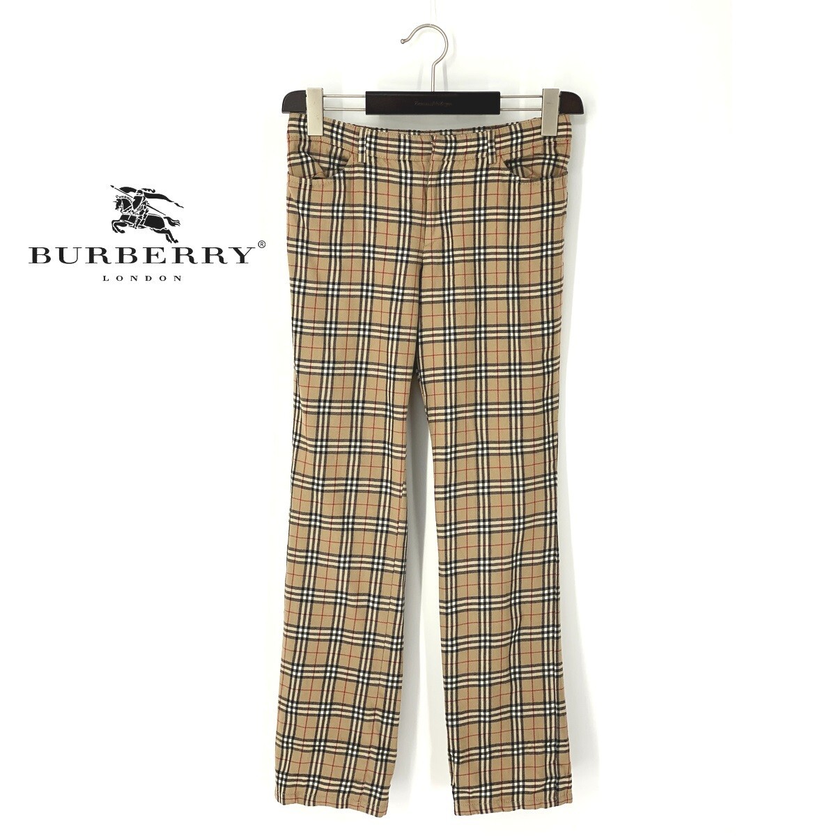 A7233/極美品 春夏 BURBERRY LONDON バーバリーロンドン ウール ノバチェック テーパード スラックス パンツ 36 ベージュ/レディース