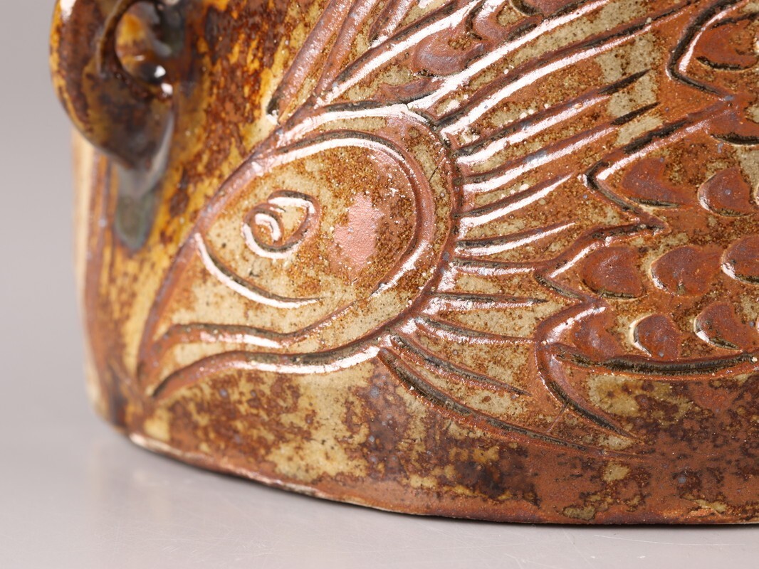 古美術 人間国宝 金城次郎 魚文 酒器 抱瓶 極上品 初だし品 D4509