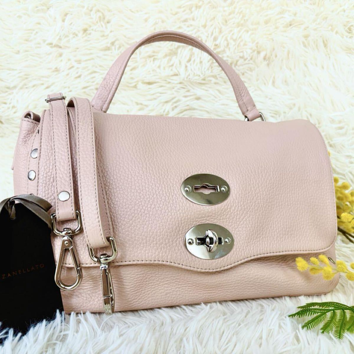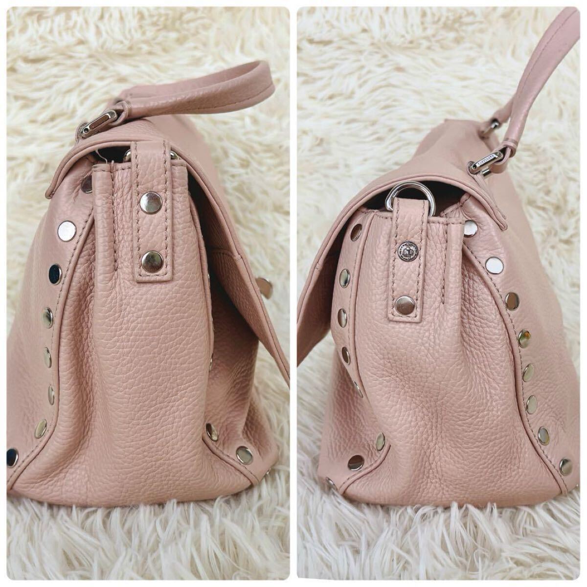ZANELLATO ザネラート ハンドバッグ ショルダーバッグ ビジネスバッグ スタッズ シルバー金具 ロゴ 刻印 2way ショルダーストラップ付き 斜め掛け クロスボディ 型押し イタリア製 革 レザー ポスティーナS 参観日 卒業式 入学式 行事