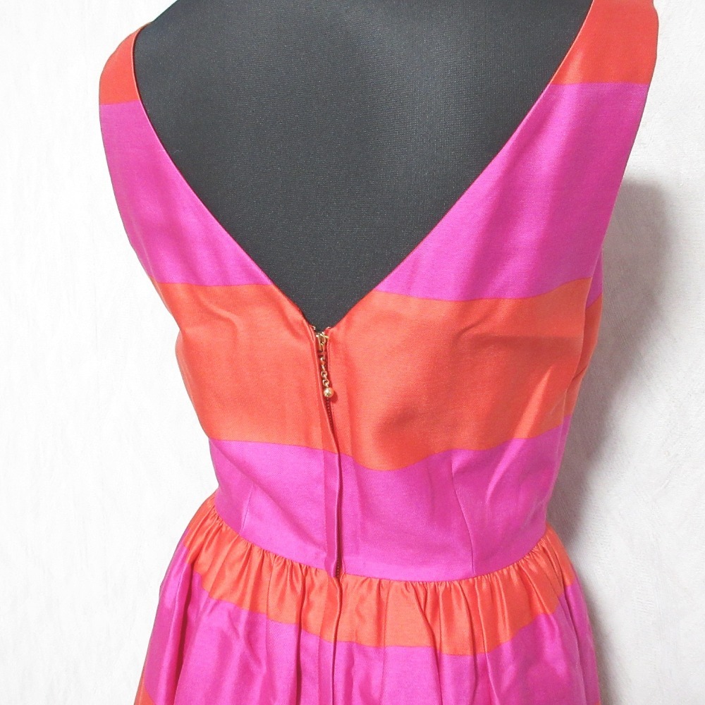 商品名:kate spade new york ケイトスペード ノースリーブ ボーダー ワンピース サイズ2 パープル オレンジレッド