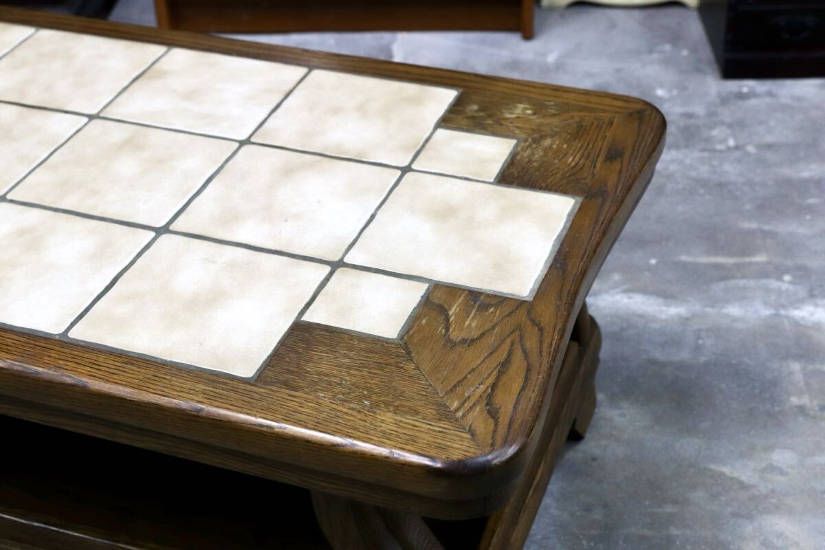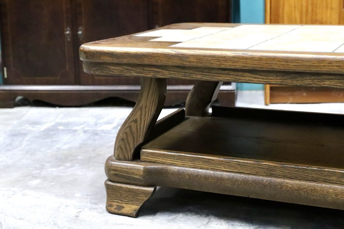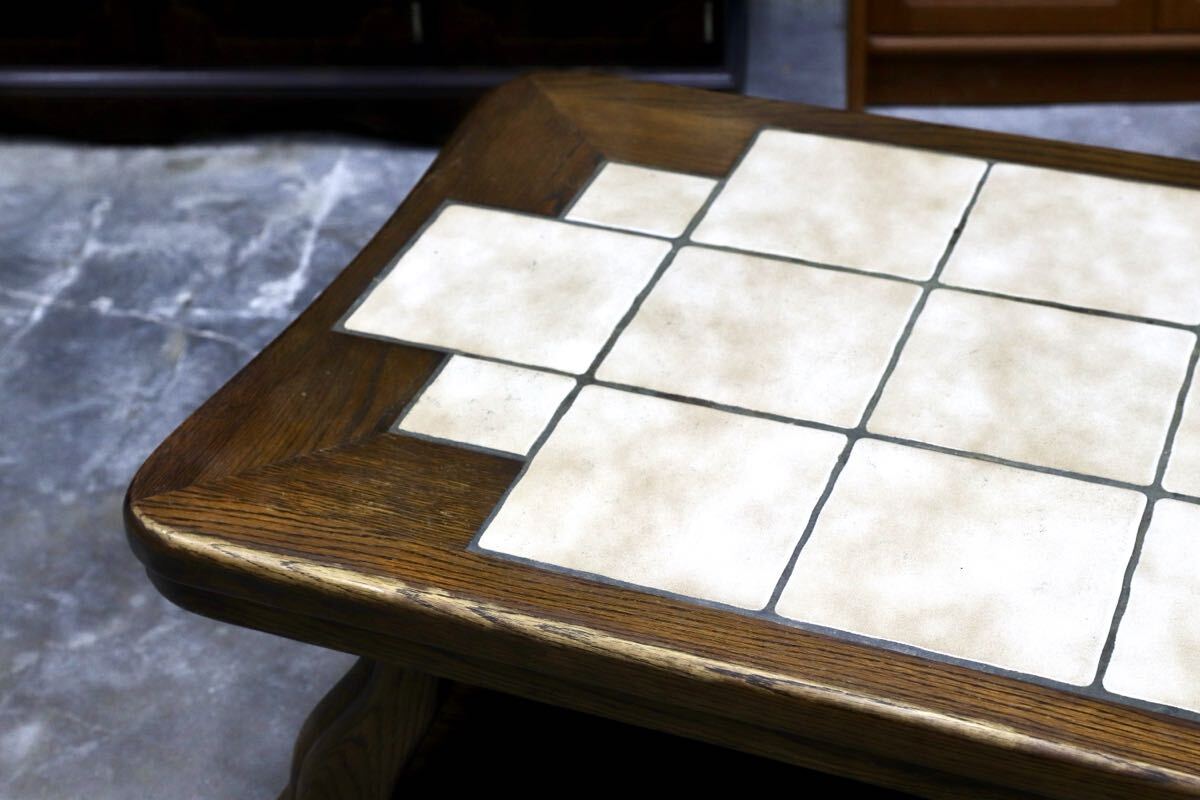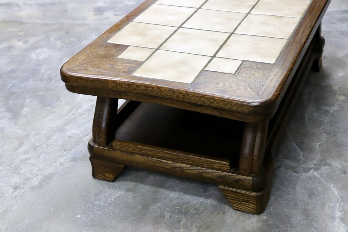 オランダダッチカントリースタイルのリビングテーブル。力強く木肌の美しいオーク材の経年変化が美しく、タイルトップともマッチしています。北欧ヴィンテージとも相性良いプロダクトです。