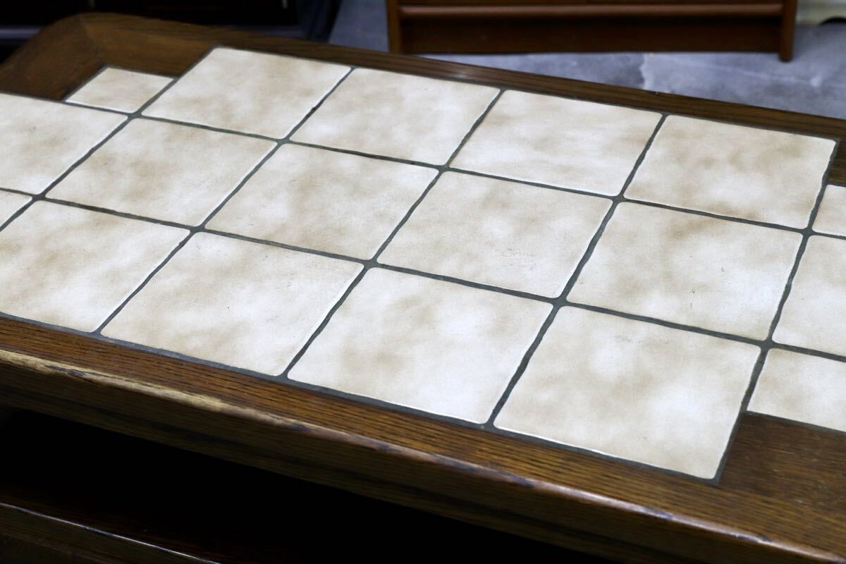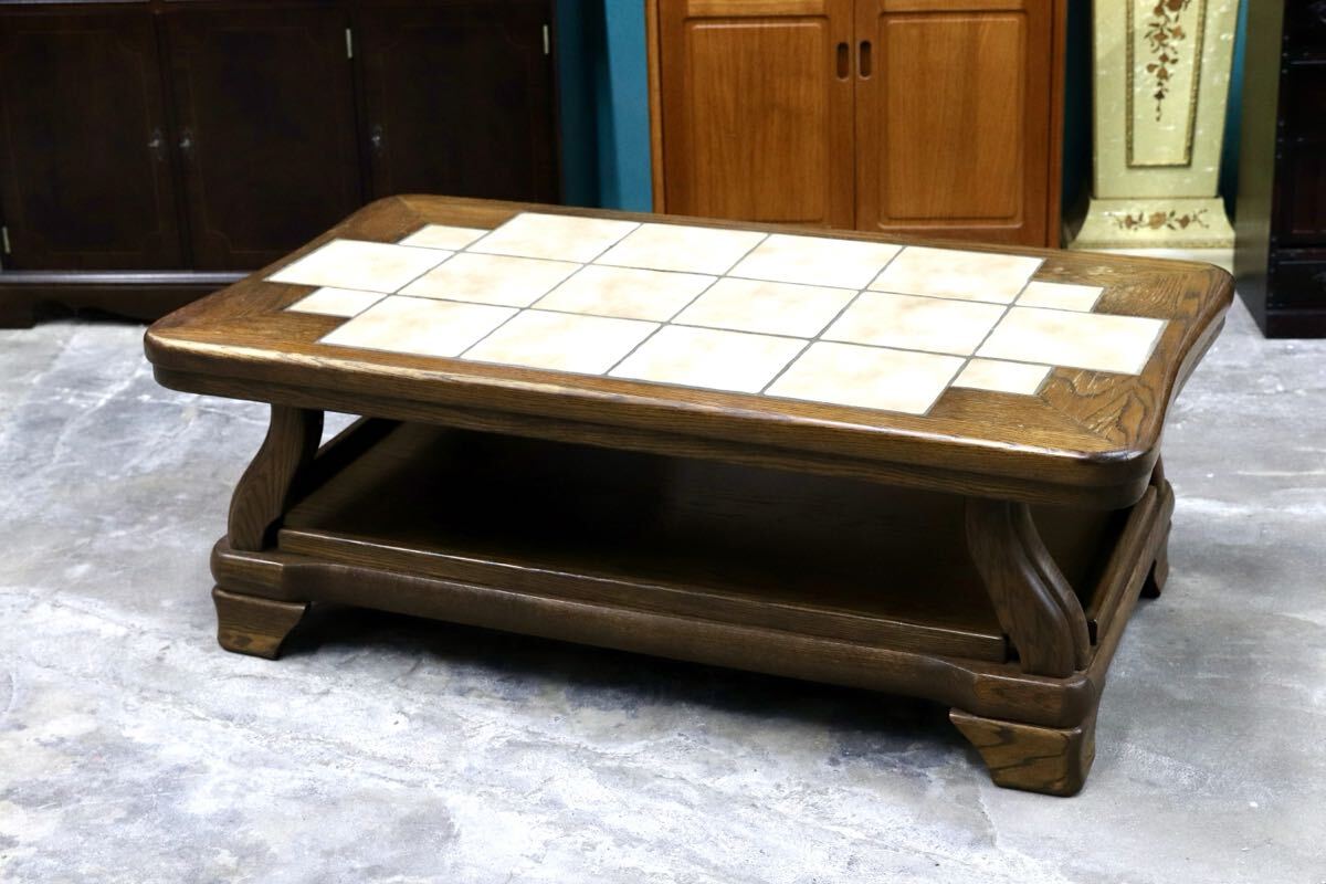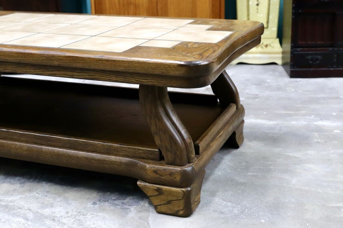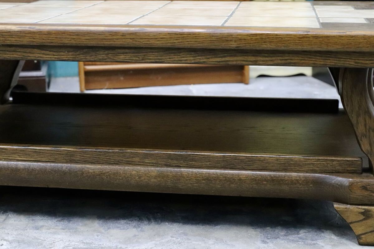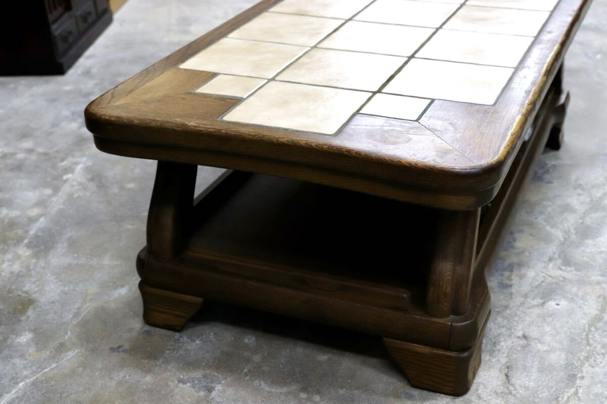 オランダダッチカントリースタイルのリビングテーブル。力強く木肌の美しいオーク材の経年変化が美しく、タイルトップともマッチしています。北欧ヴィンテージとも相性良いプロダクトです。