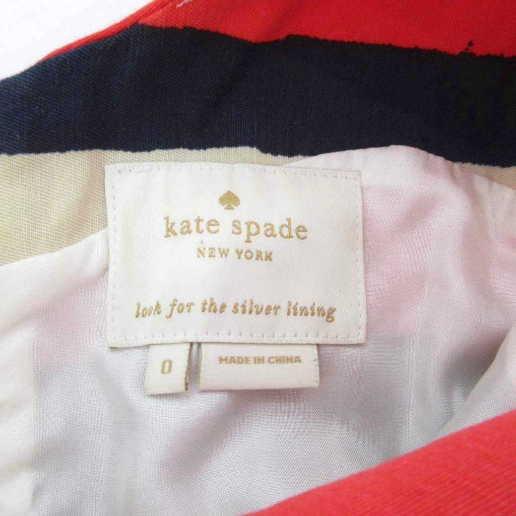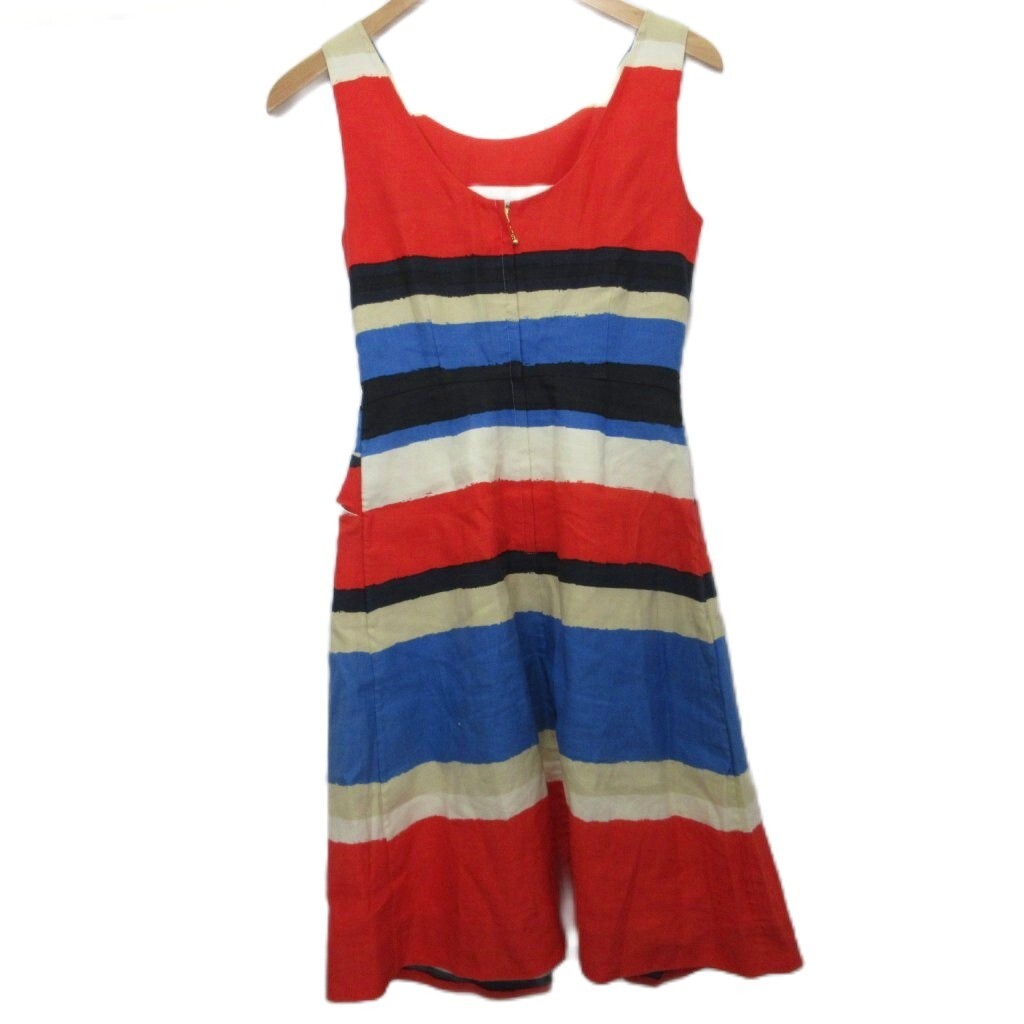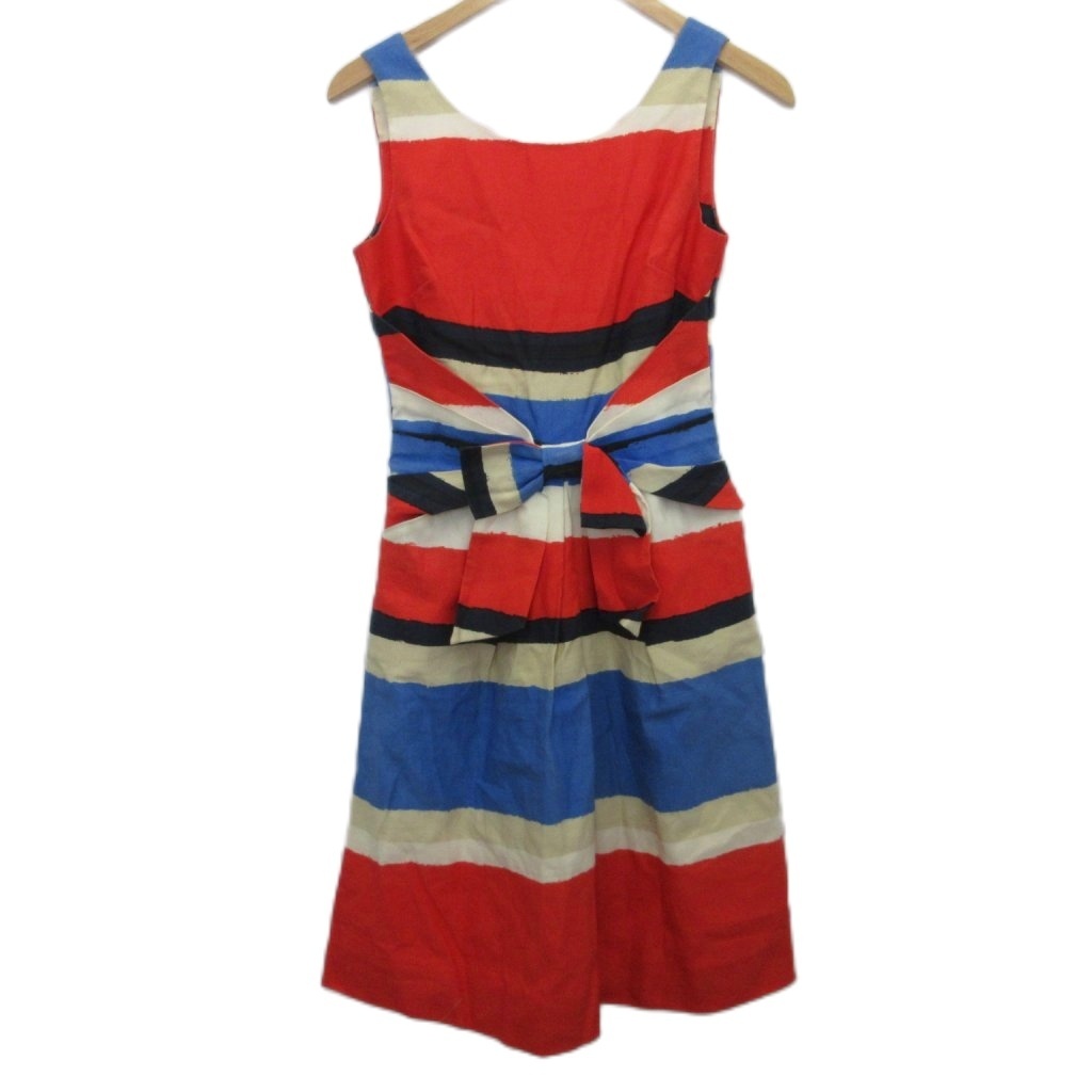 ケイトスペード KATE SPADE ワンピース リネン ひざ丈 ノースリーブ ボーダー 赤 青 白 0 約S ■YHS4 レディース