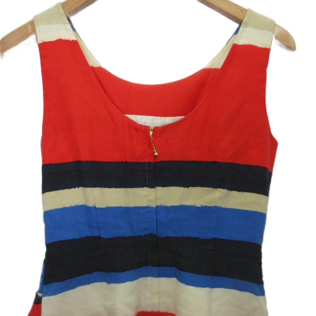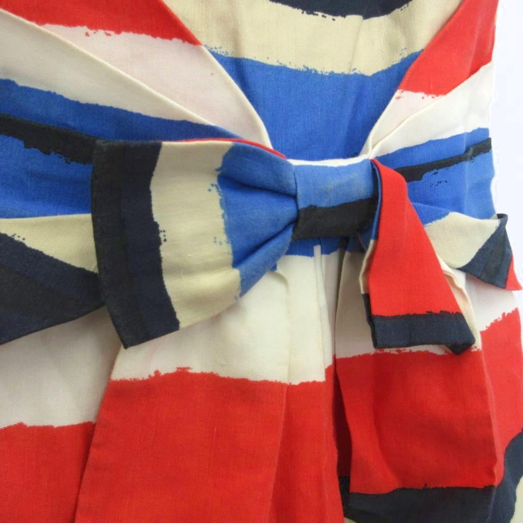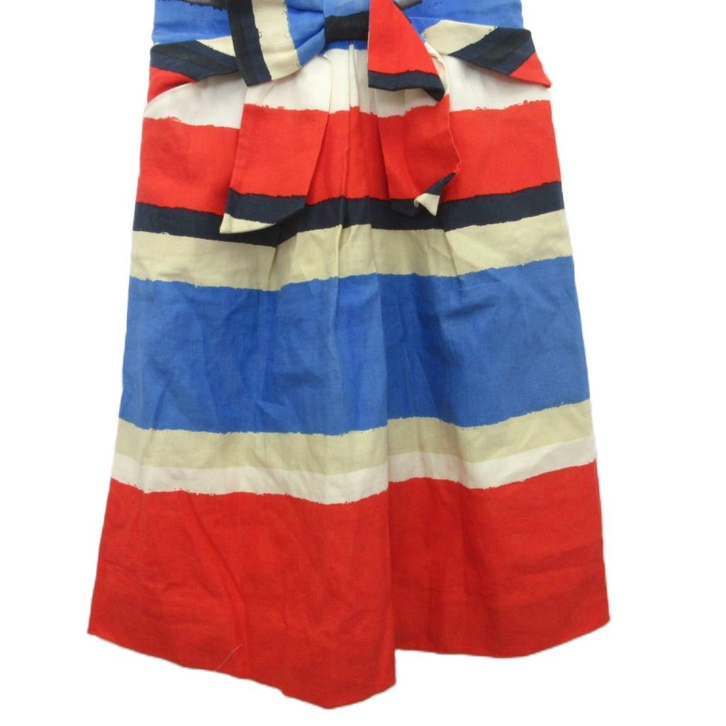 ケイトスペード KATE SPADE ワンピース リネン ひざ丈 ノースリーブ ボーダー 赤 青 白 0 約S ■YHS4 レディース