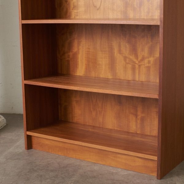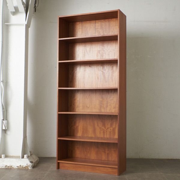 チーク材を使用したオープン仕様のブックシェルフ。シンプルながらも細部に作り手のこだわりを感じる一品。スリムで使い勝手がよく、店舗のディスプレイ棚などにもおすすめです。