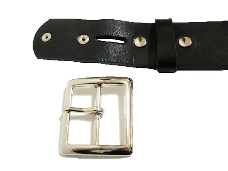 スタッズは真鍮素材にニッケル鍍金です。バックルは亜鉛素材にニッケル鍍金です。