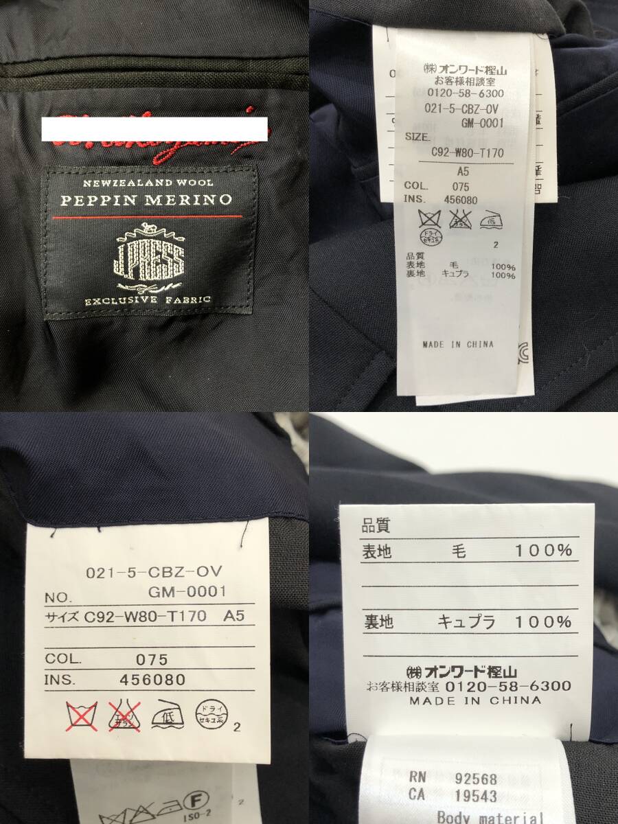J.PRESS 紺ブレザー 金ボタン 3B テーラードジャケット ペピンメリノ ウール ネイビー CBZ-OV-GM-0001 ジェイプレス 古着 SIZE:A5■0923U 肩パット付き |