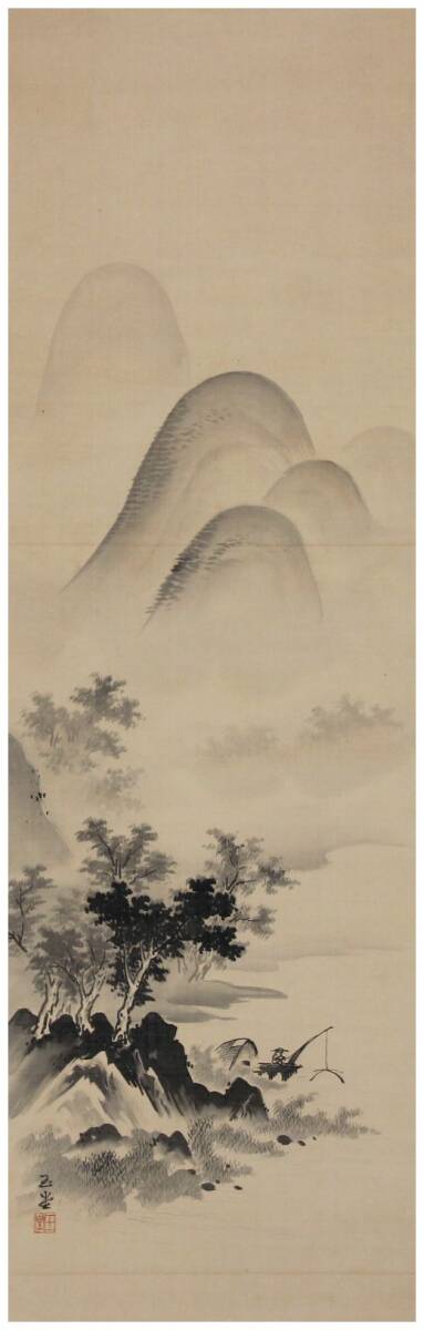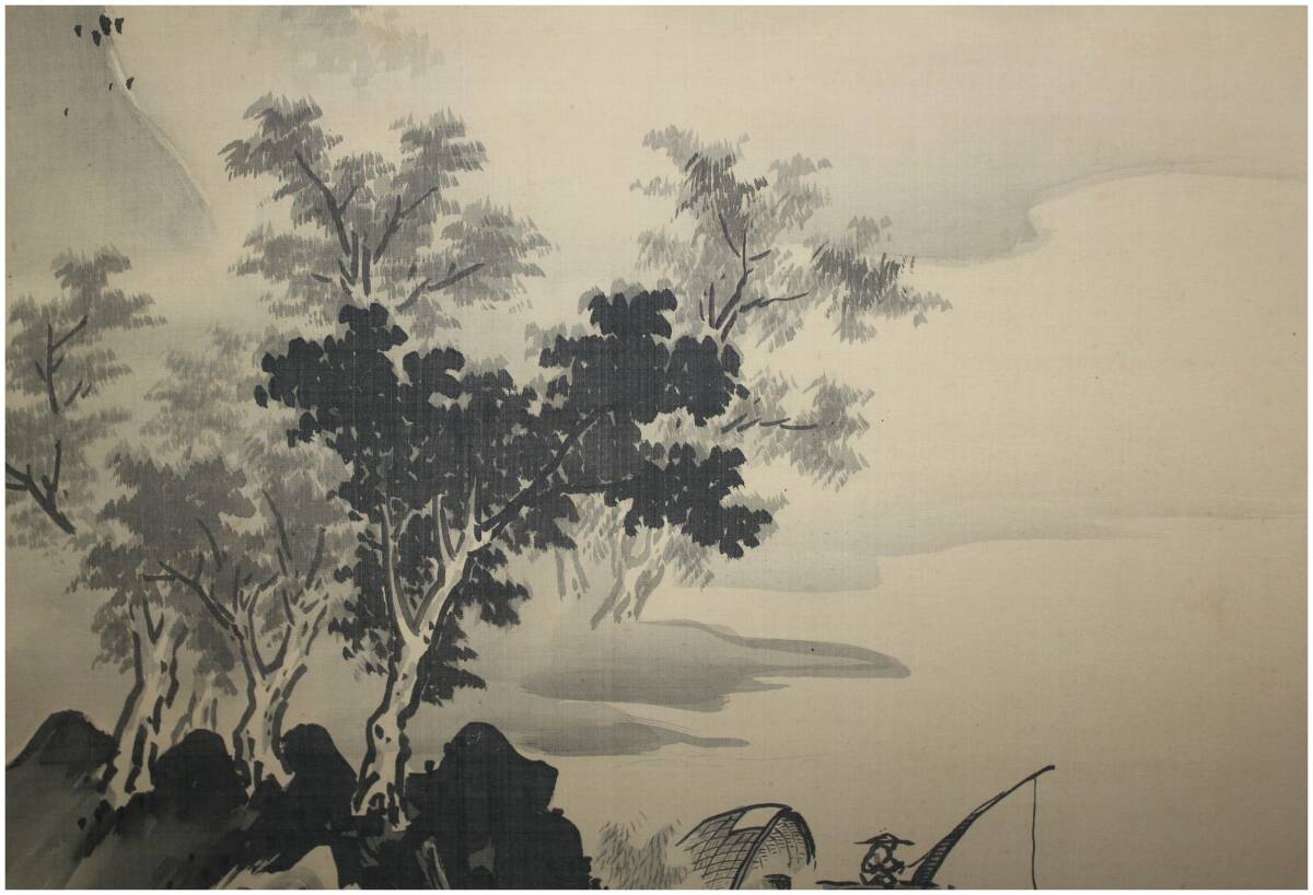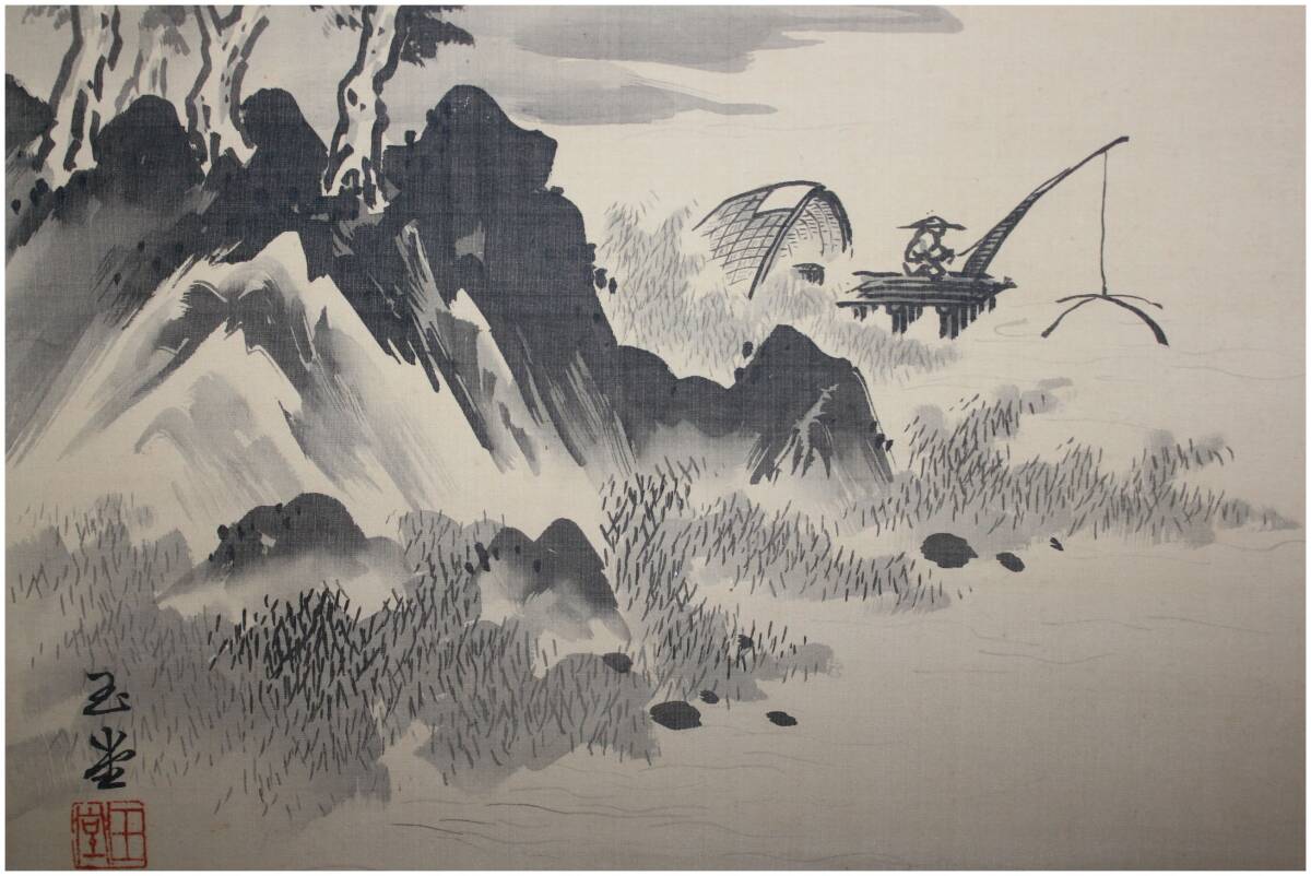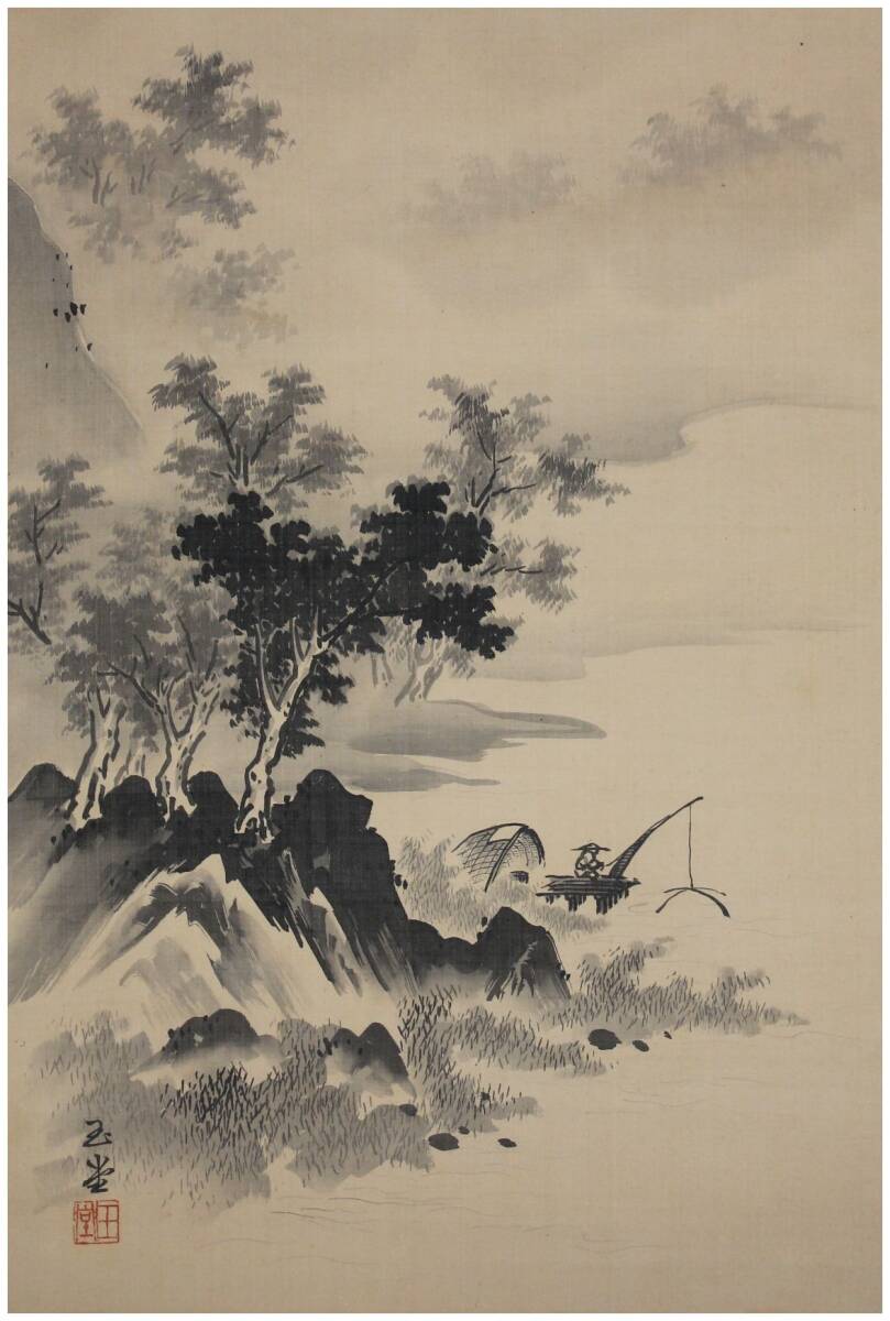 近代日本画壇巨匠・【川合玉堂】 夏山漁夫図 掛軸出品です