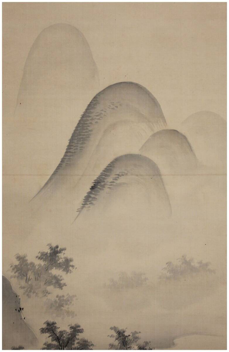 「模写」 近代日本画壇巨匠・【川合玉堂】 夏山漁夫図 掛軸 明治~昭和期・愛知・帝室技芸員・文化勲章・橋本雅邦師事