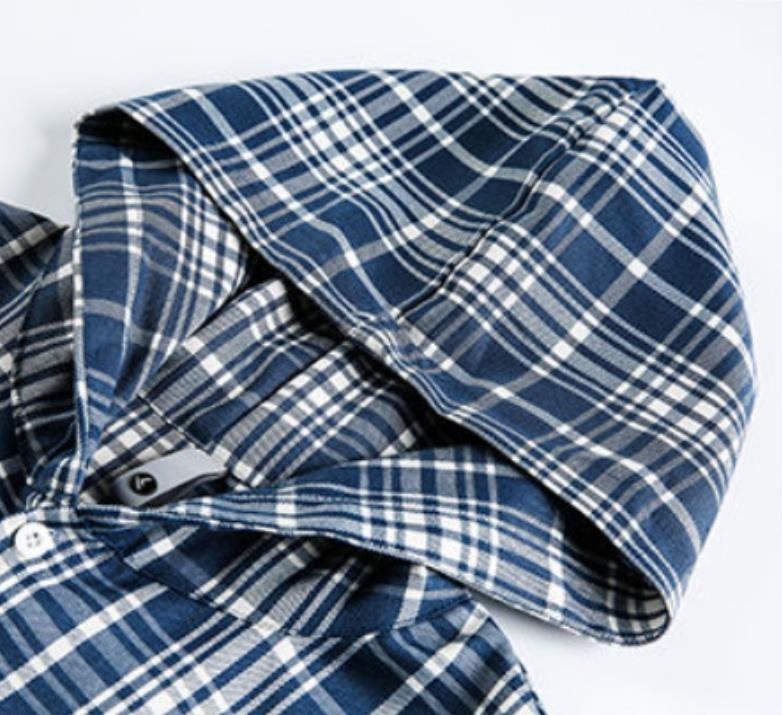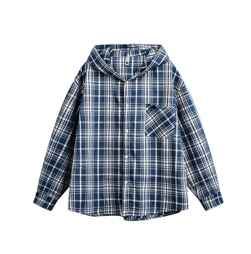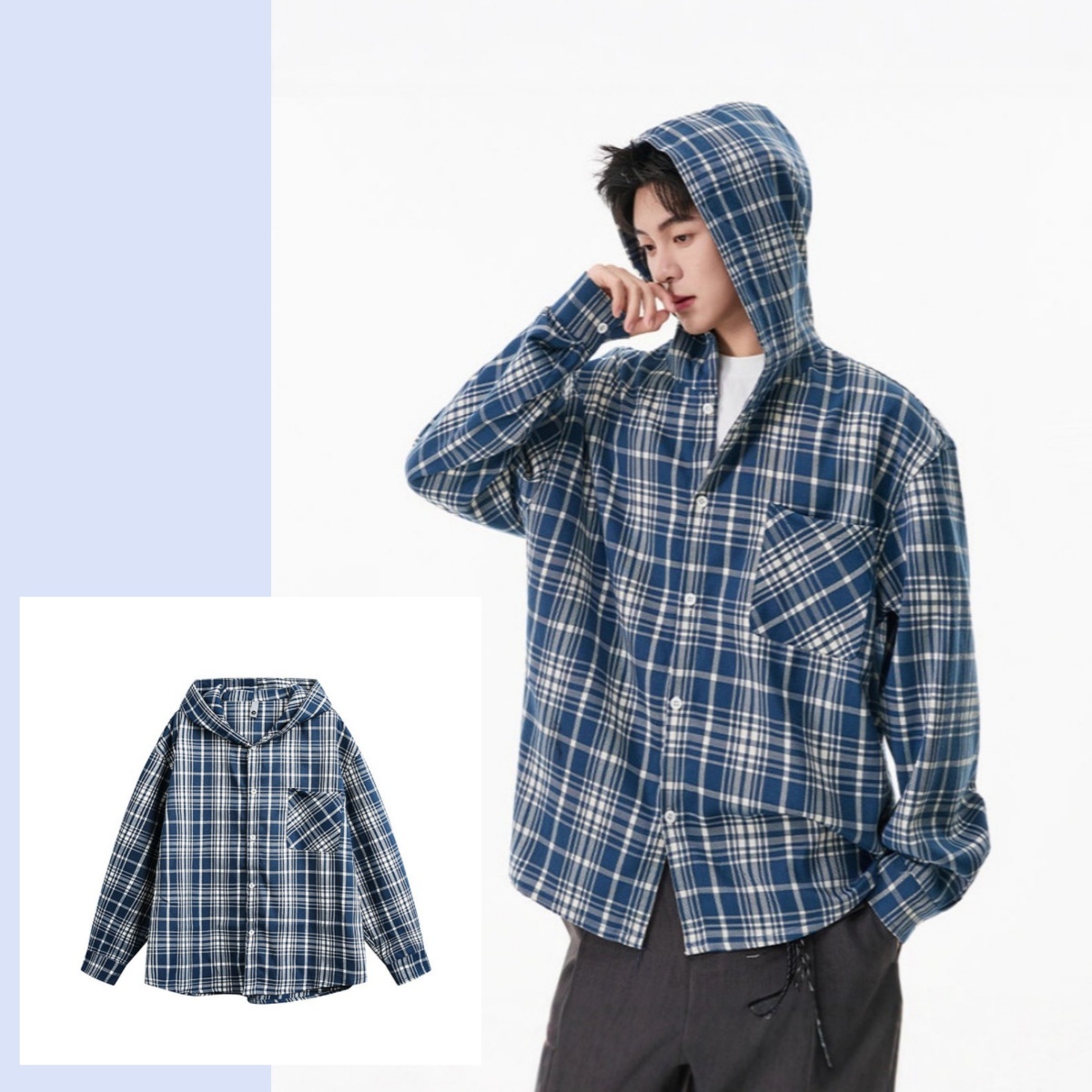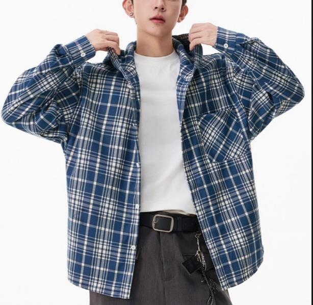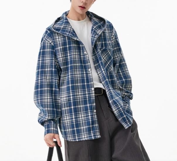 パーカー チェック長袖シャツ  シャツ トップス シャツジャケット 新品★メンズ 開襟シャツ カジュアルシャツ【A003】ブルー 2XL