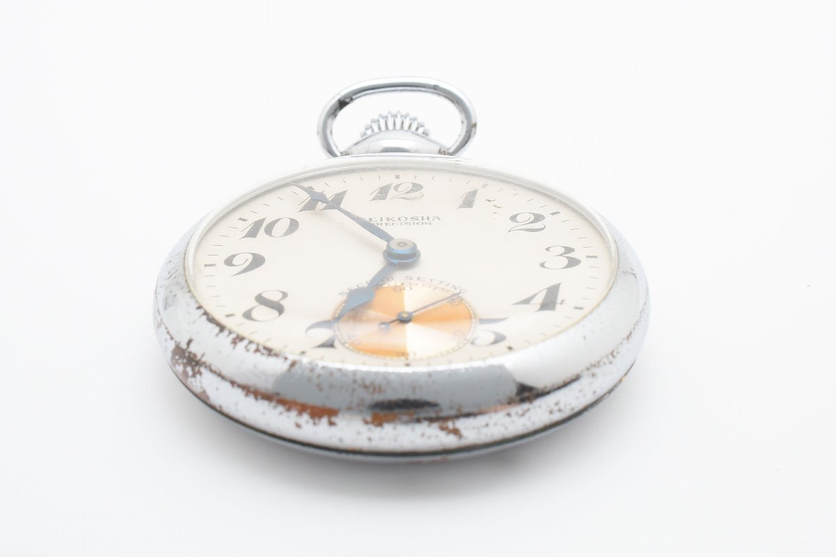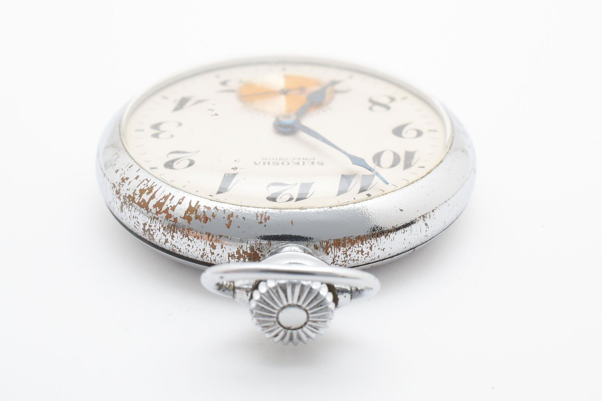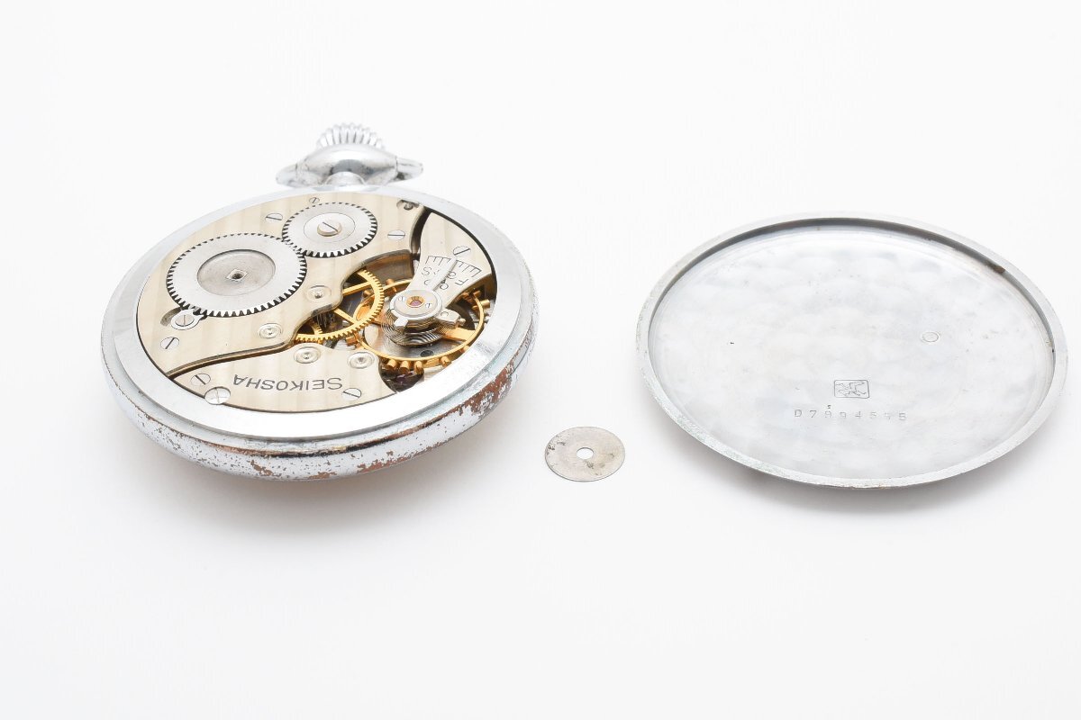 使用による傷や汚れがございます。不動品。動作未確認品。現状出品。(画像参照) *文字盤裏破損 リューズ異常 |