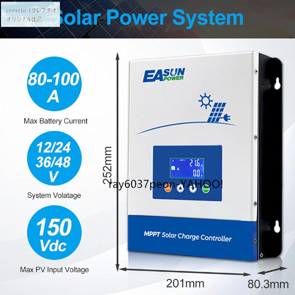 100A MPPT ソーラー充電コントローラー 12V/24V/36V/48V 自動認識 150V入力 LCD 多機能 太陽光発電用
